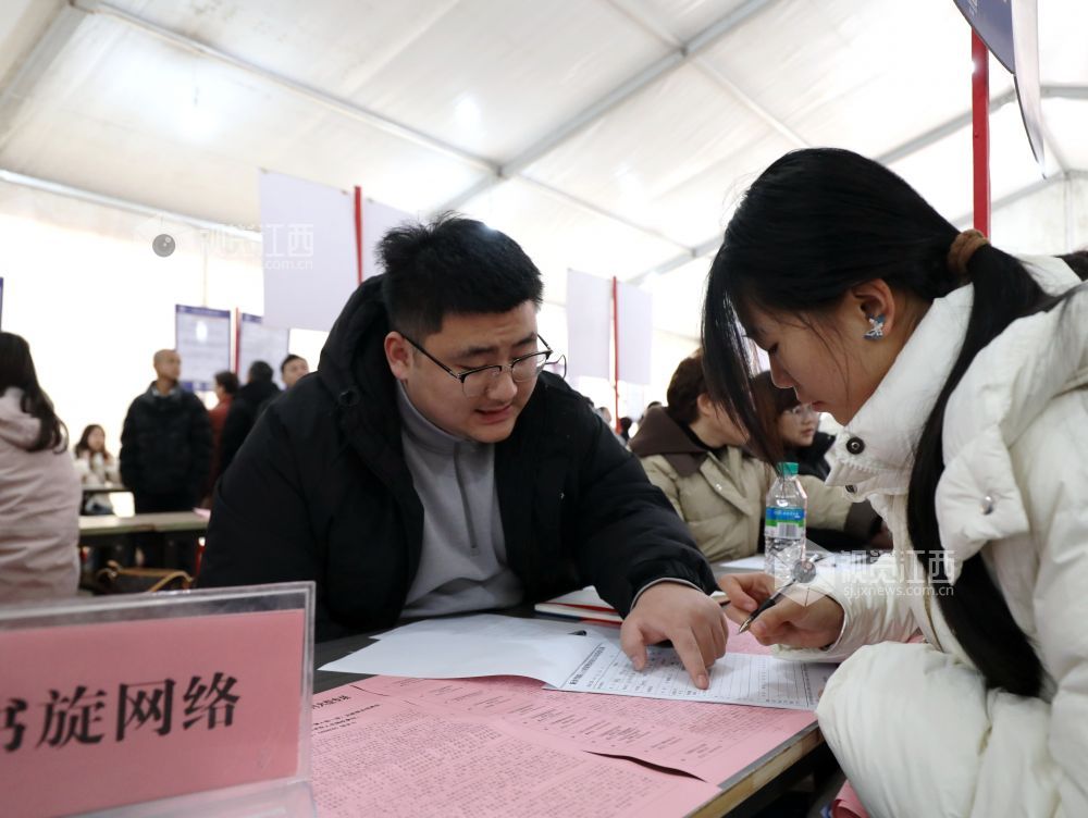 2025年2月6日,江西省分宜县在天工广场举行2025年春风行动就业招聘会,集中为有就业创业意愿的劳动者、有用工需求的用人单位提供服务。当日,在新春专场招聘会上,77家用人单位提供岗位3800余个,吸引众多求职者到场咨询应聘。