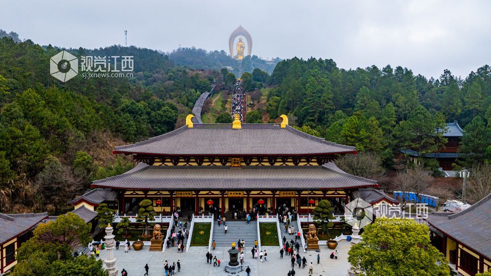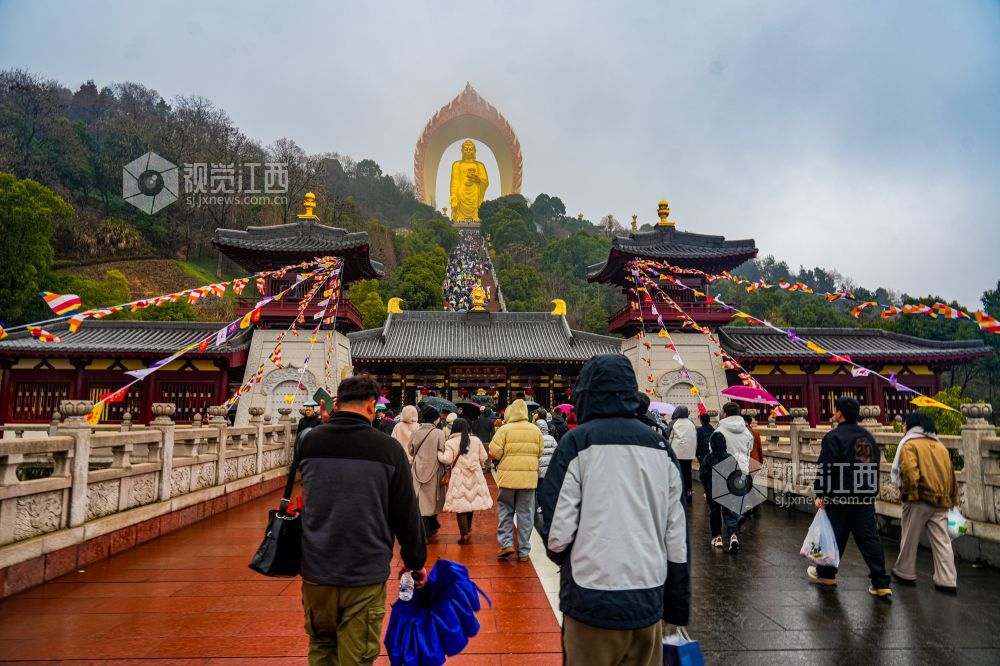 2025年2月2日在江西省九江市东林大佛景区拍摄。