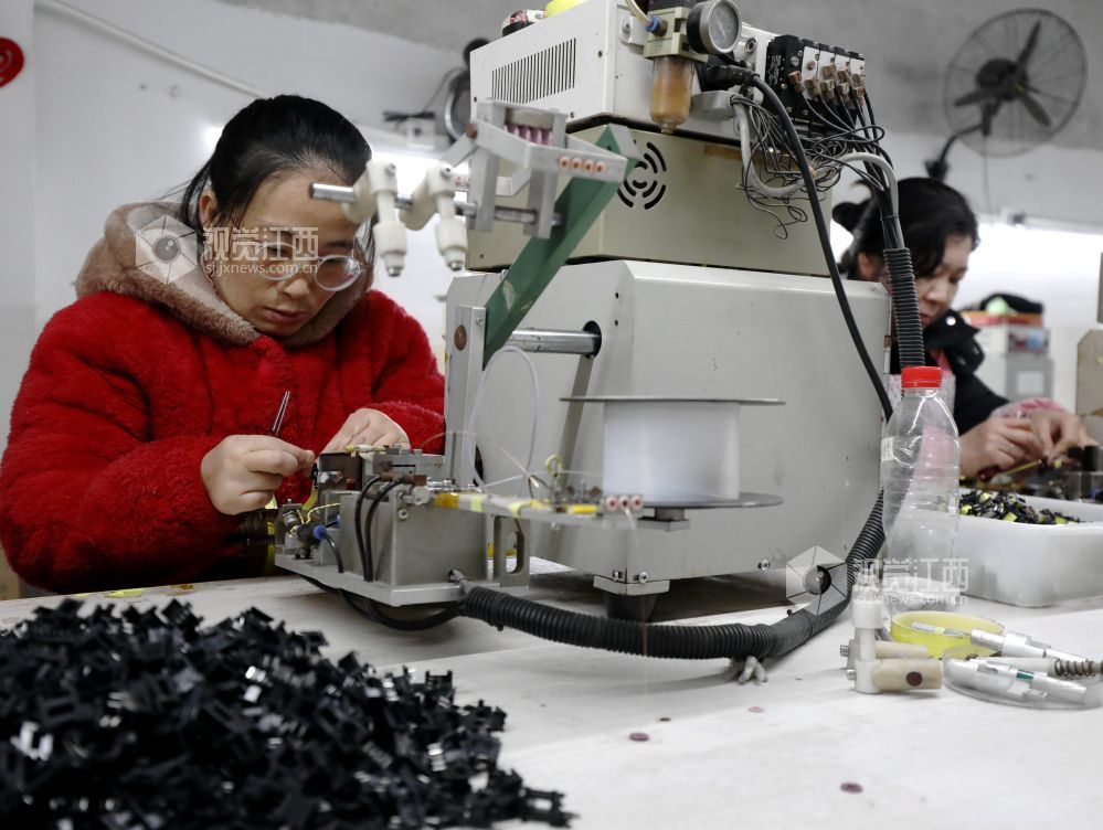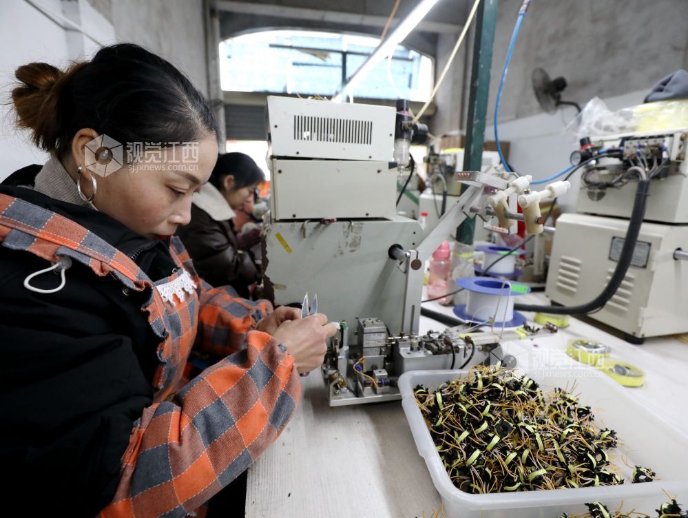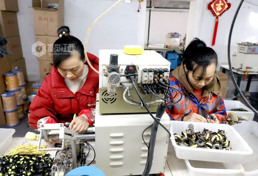 2025年2月7日,在江西省分宜县钤西街道一科技有限公司生产车间内,工人们正忙碌加工电子变压器。春节假期过后,钤西街道小微企业陆续复工复产,开足马力,加紧赶制各类订单产品,力争实现新春“开门红”。小微企业发展的同时还带动了周边50多名居民就业,让群众实现家门口就业增收梦。