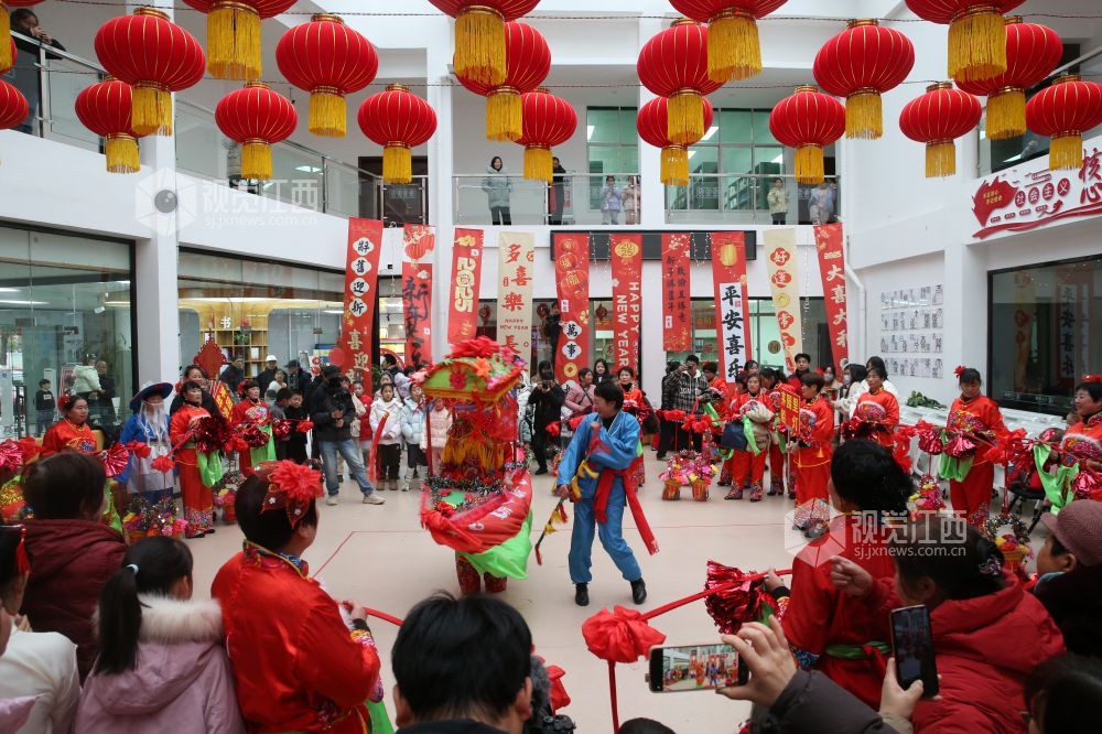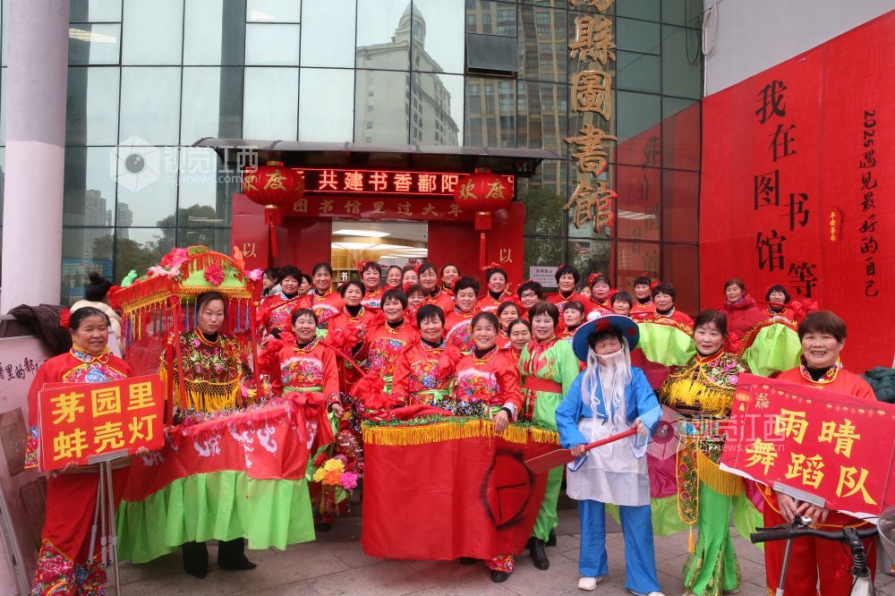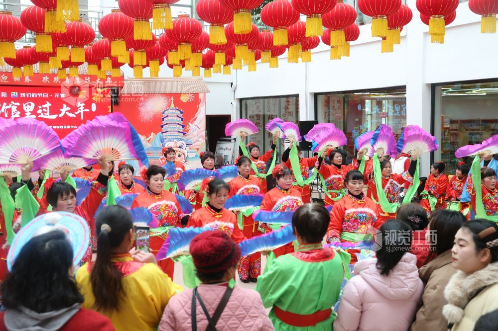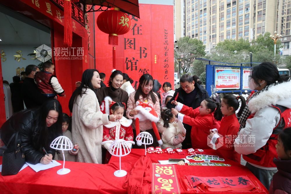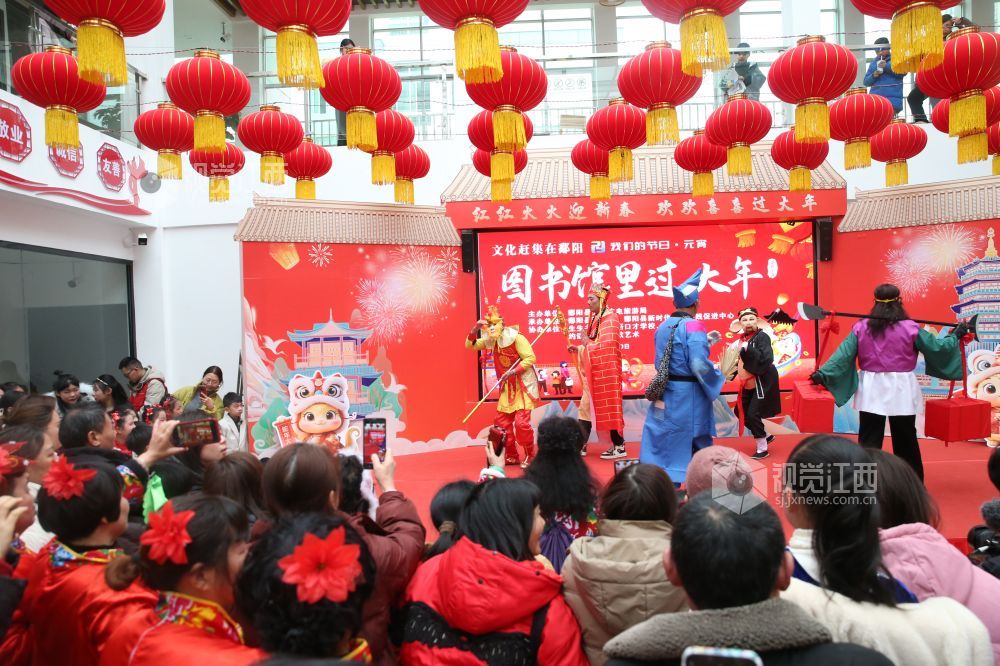 2025年2月10日,江西省鄱阳县图书馆热闹非凡,非遗展示、文艺表演等活动吸引广大读者市民参加。