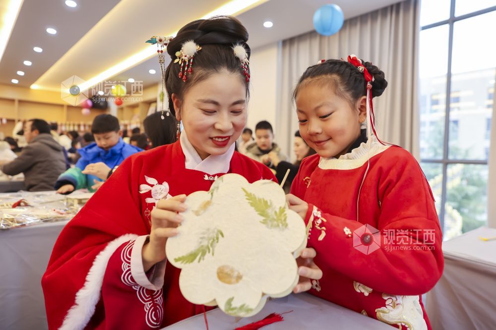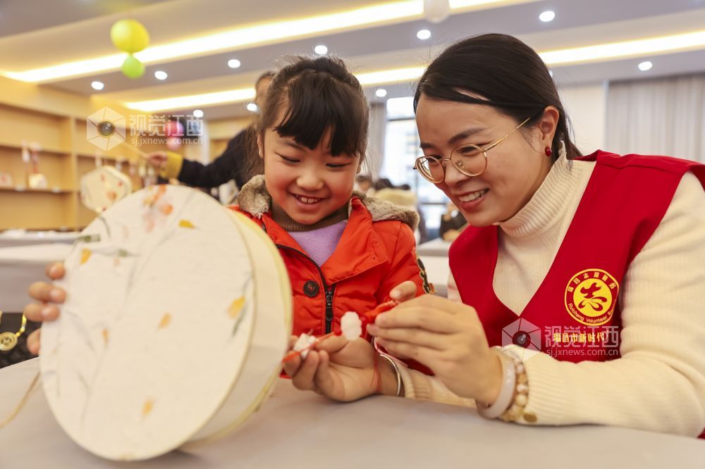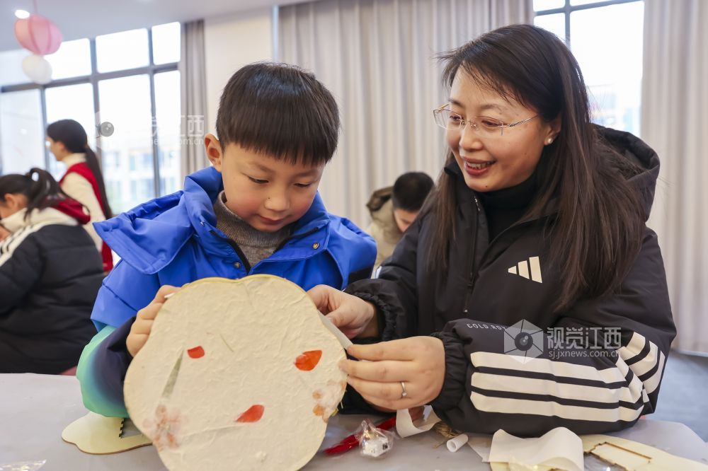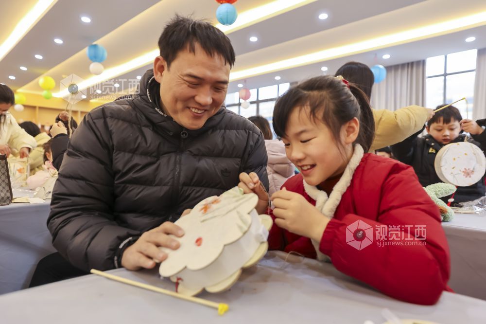 2025年2月11日,在江西省瑞昌市新时代文明实践中心,小朋友和家长在志愿者指导下猜灯谜、制作花灯,喜迎元宵佳节。