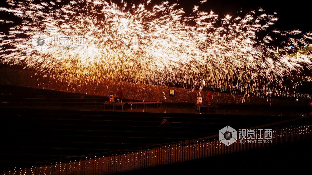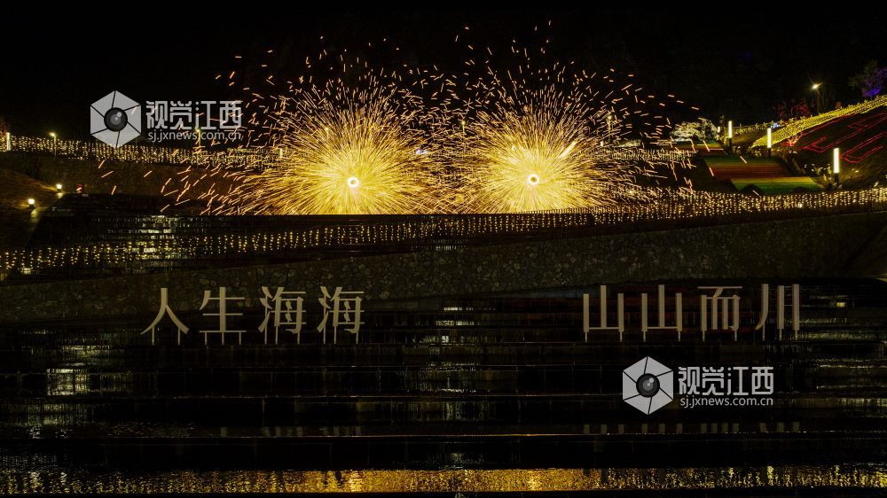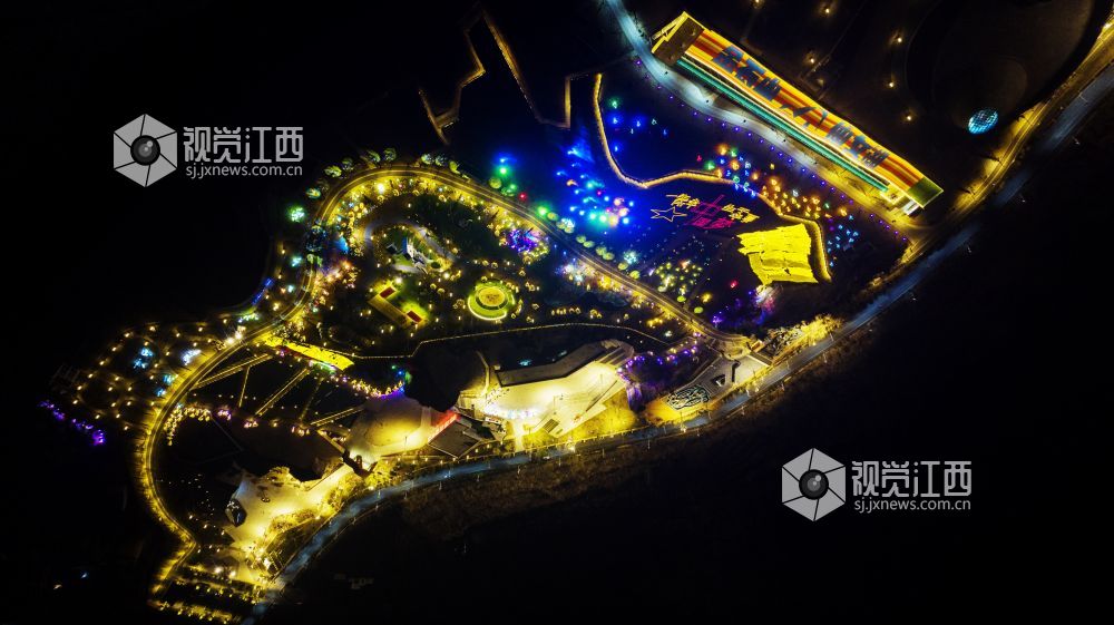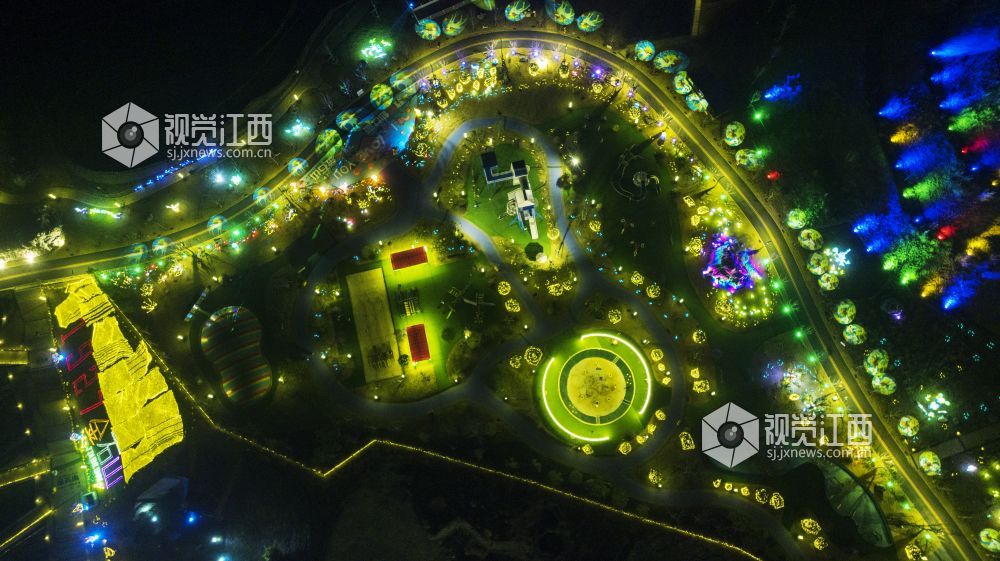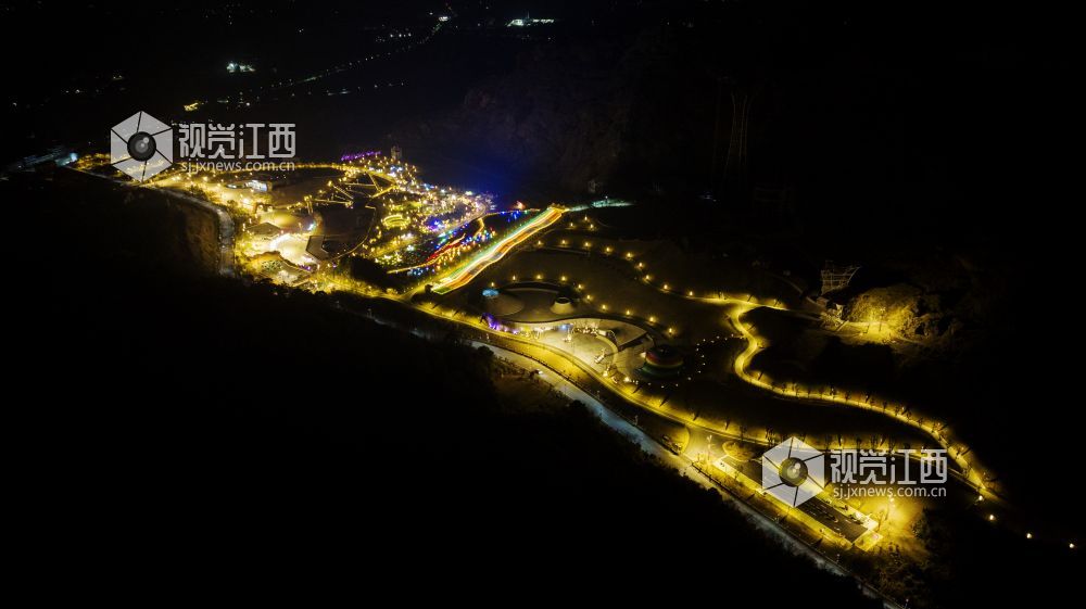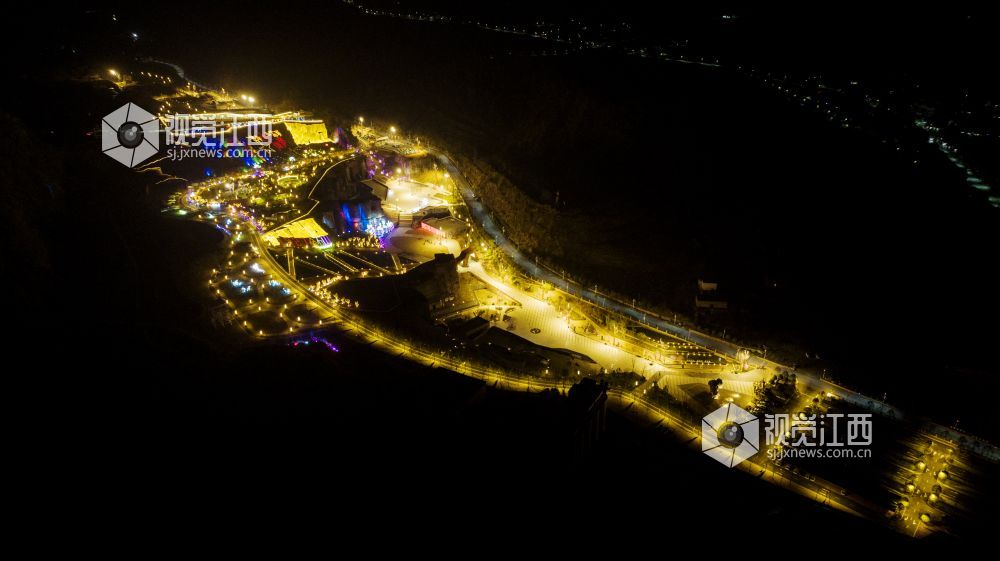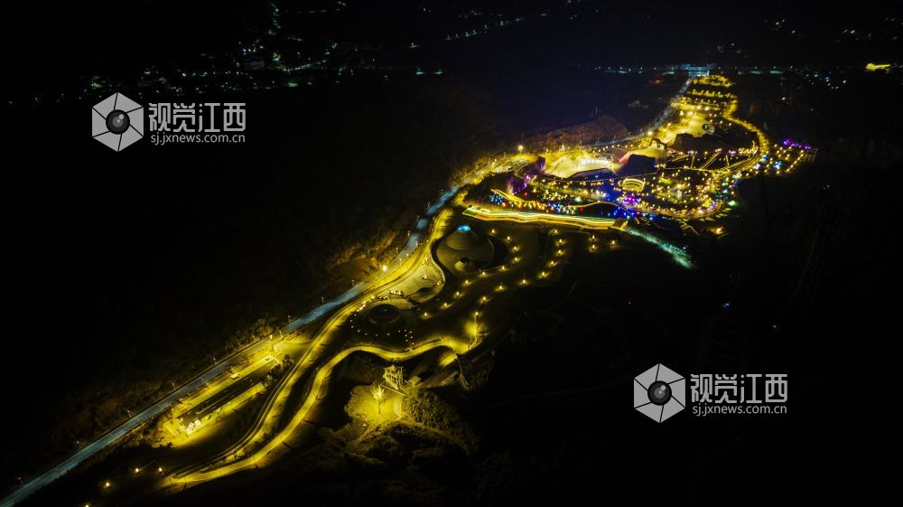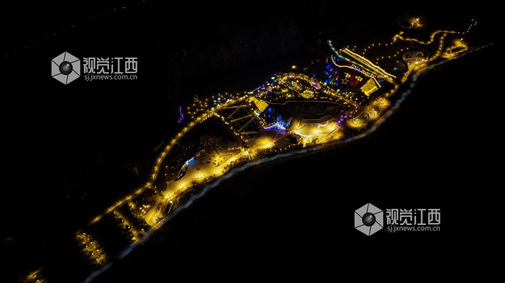 2月11日,航拍江西新余仙女湖区欧里镇金石山矿山公园夜景如画,如梦如幻,吸引了许多游客前来游玩观赏。