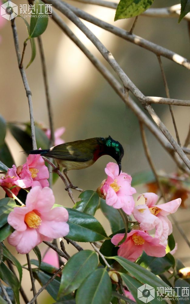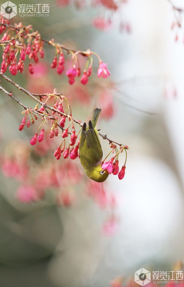 2月13日,春光作序万物生,江西省林科院的早樱在春寒料峭中盛开,引得绣眼鸟,红头山雀等鸟类欢快采蜜不亦乐乎,可见环境生态之好。