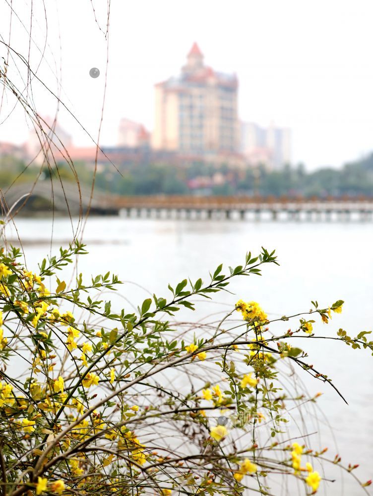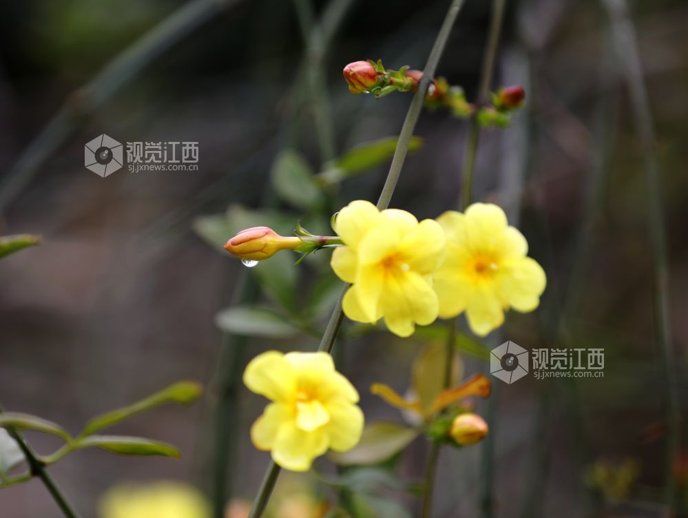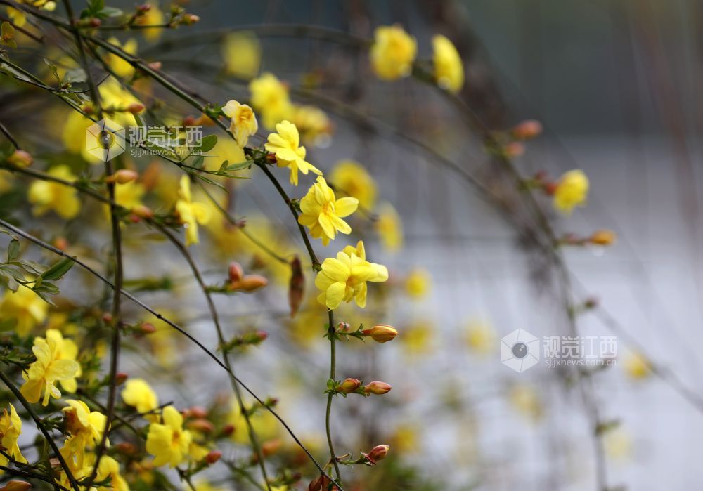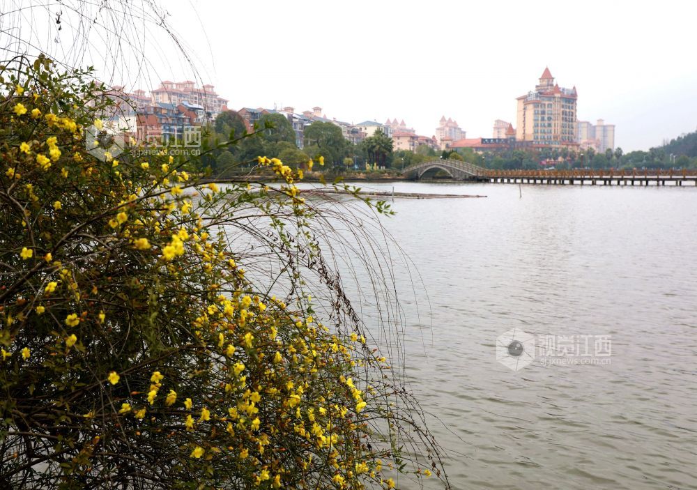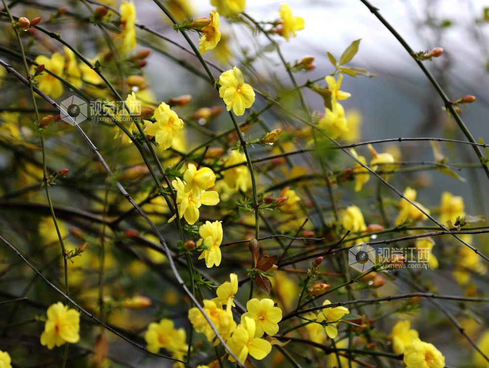 2025年2月21日,江西省分宜县东湖公园湖畔,迎春花灿烂怒放,朵朵迎春花缀满枝条,呈现出一派生机勃勃的春日景象。