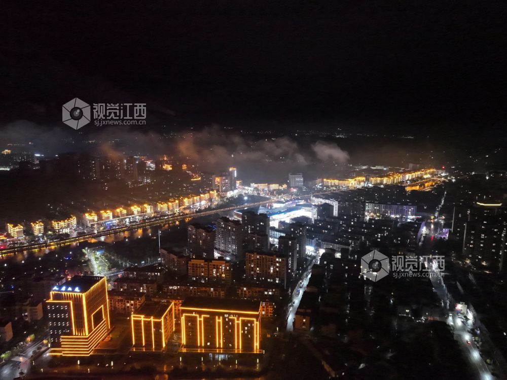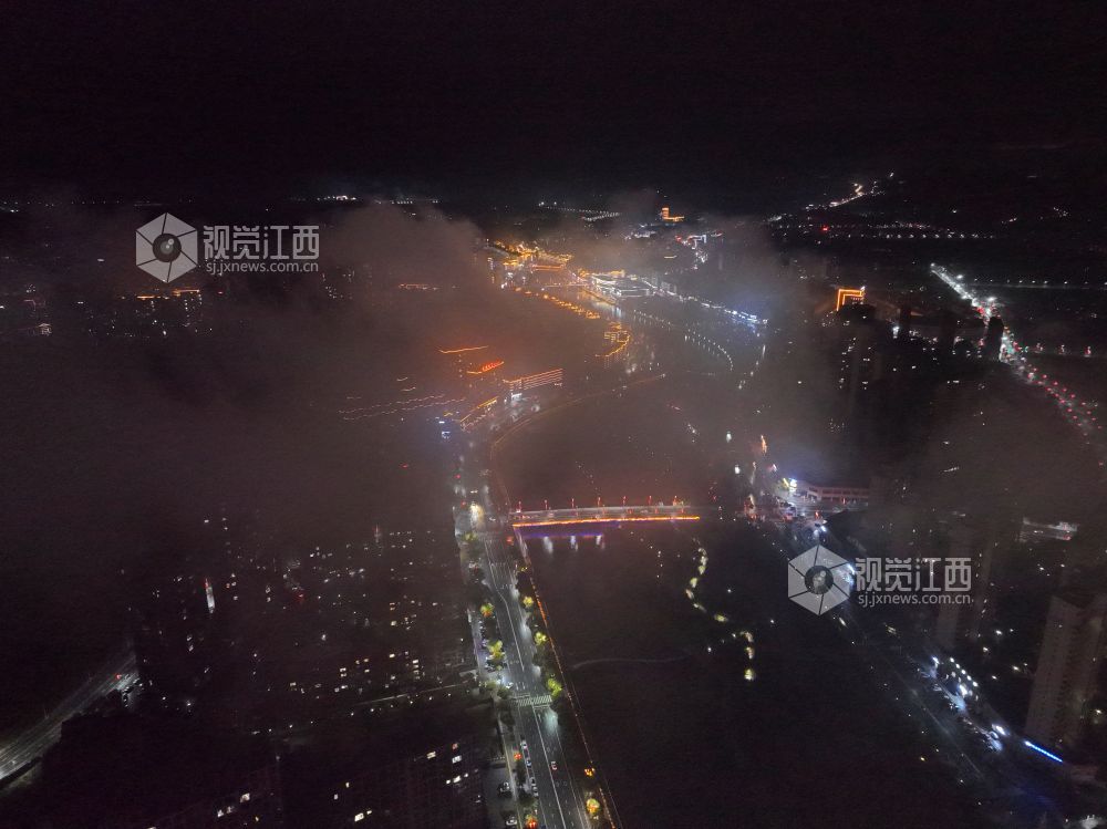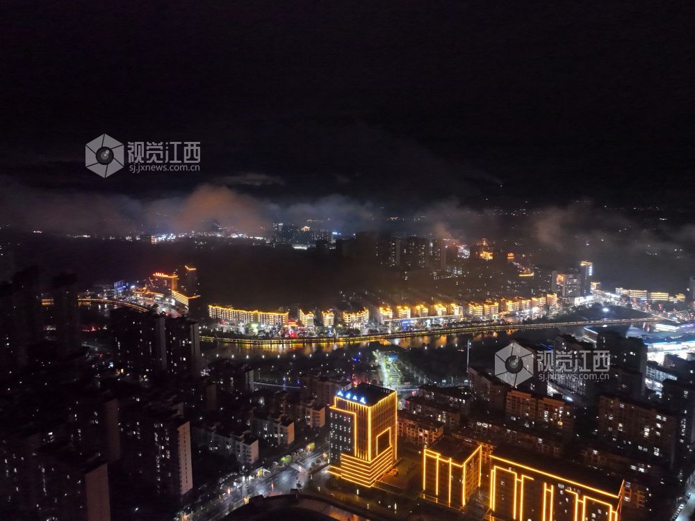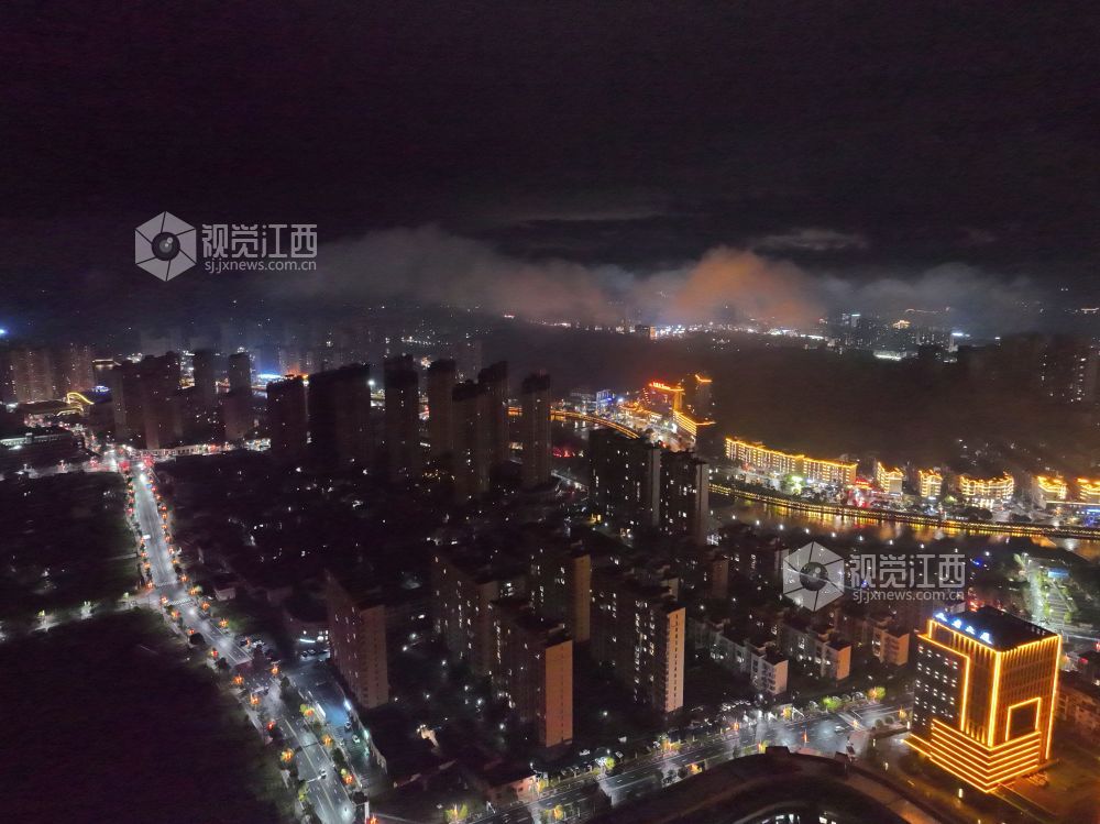 2025年2月22日晚,雨后的江西省萍乡市芦溪县上空云雾缭绕,在灯光的照耀下,整个城市五彩斑斓,宛如仙境,美如画卷。