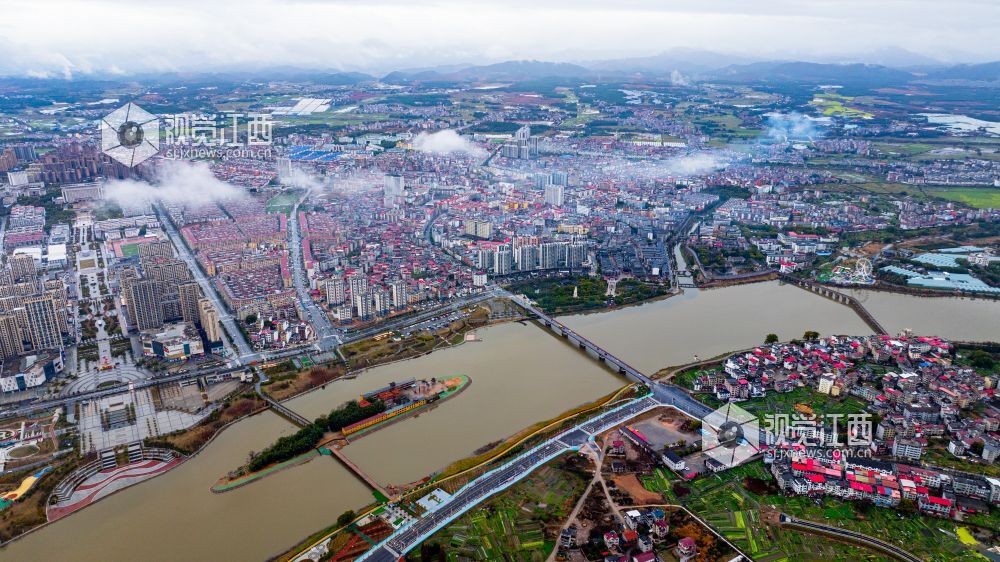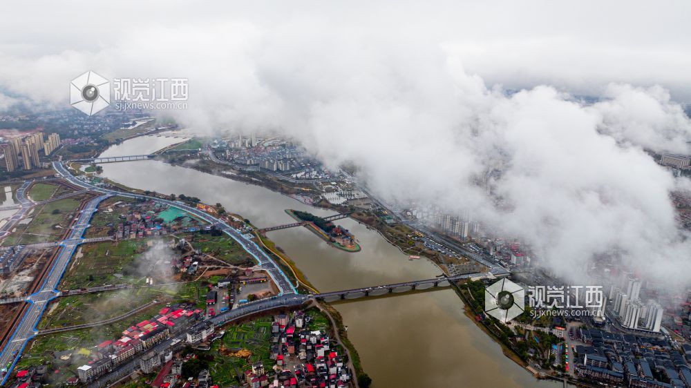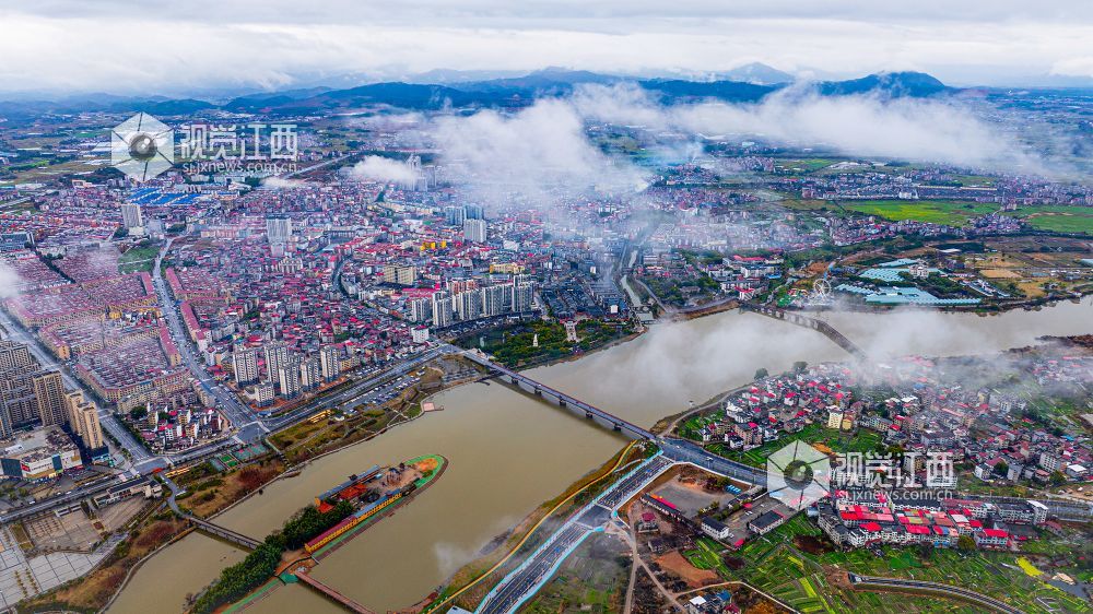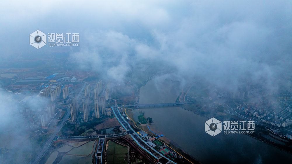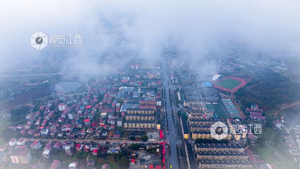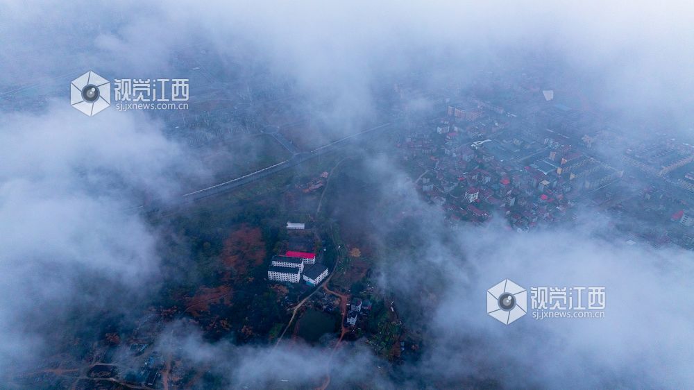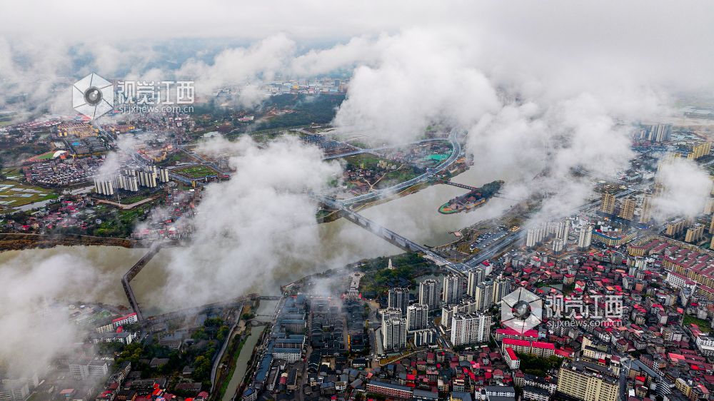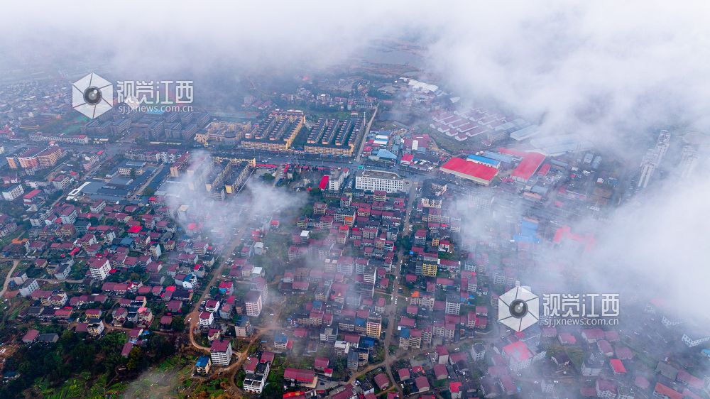 近日,一场春雨过后,在江西省吉安市永丰县,伴随着轰鸣的雷鸣和大雨,整个县城被云雾缭绕。若隐若现的小城,在无人机的视角中,仿佛是一幅浑然天成的山水画卷,宛若人间仙境如梦如幻。