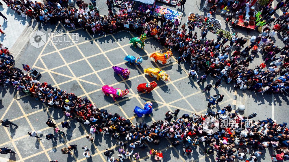 庙会现场,多支非遗民俗表演队伍组成的巡游队在激昂的锣鼓声中穿梭于圩镇街头,各式国家级、省级、市级非遗项目如敖上草龙、渼陂彩擎等轮番上阵,引得现场阵阵欢呼。