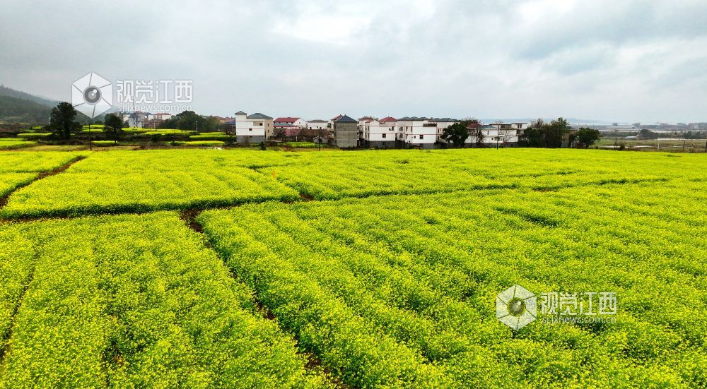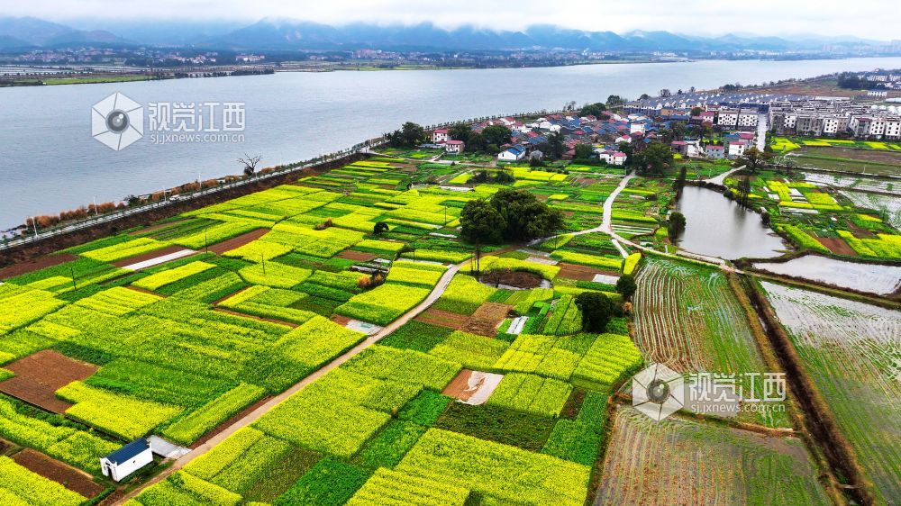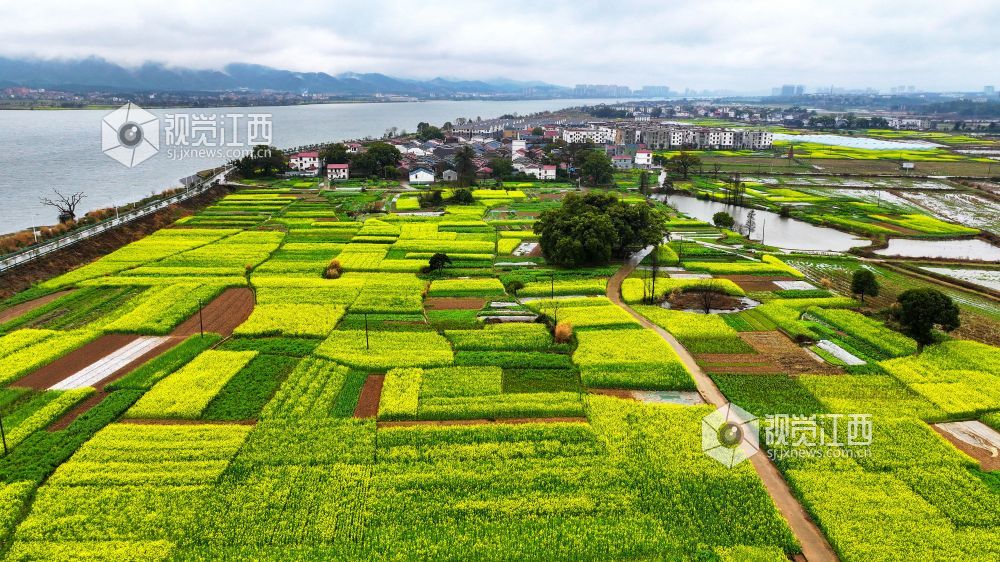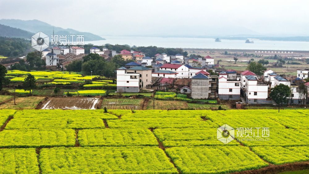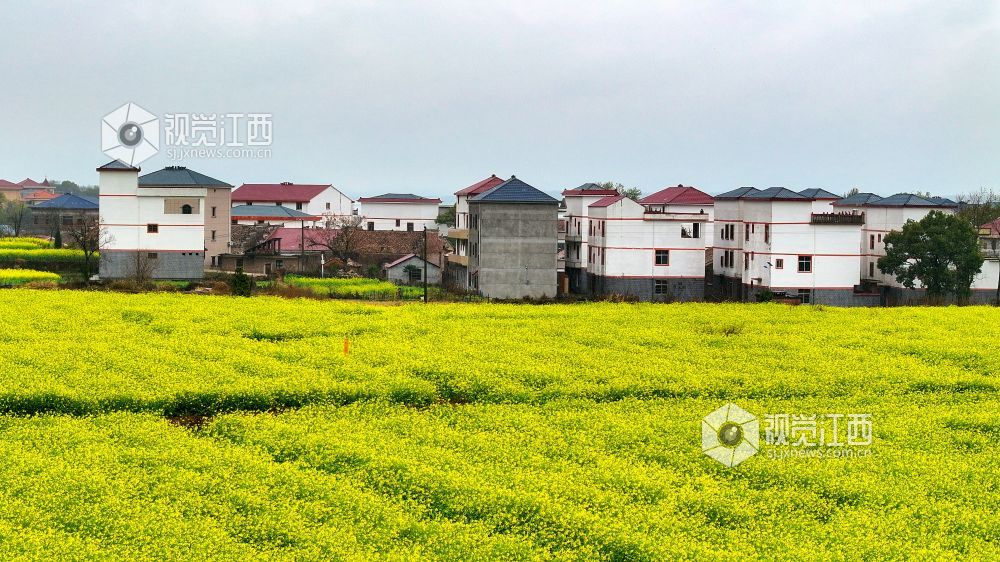 2025年3月4日,江西省吉安市吉水县盘谷镇小江村油菜花竞相开放,金色花海与白墙黛瓦的村居、蜿蜒的乡道相映成趣,绘就一幅乡村振兴的生态画卷。