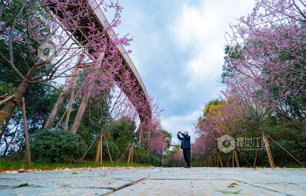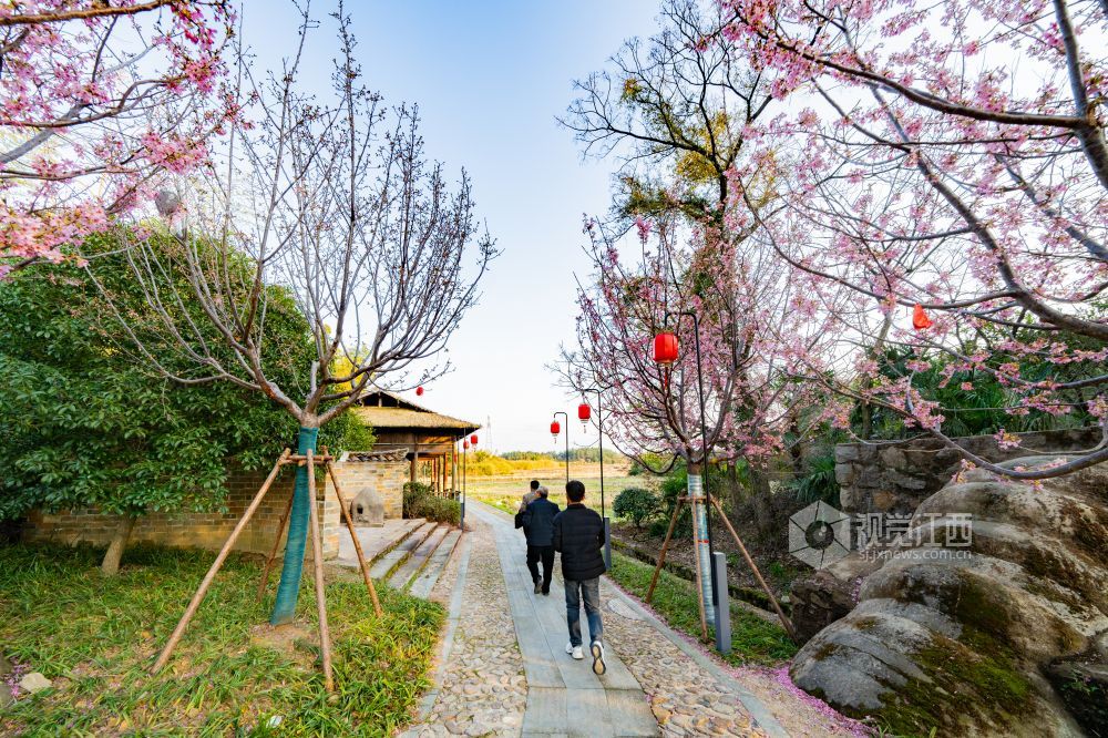 近日,江西省金溪县合市镇游垫古村樱花绽放,香气扑鼻,鸟鸣花间,春色迷人。