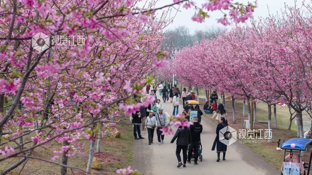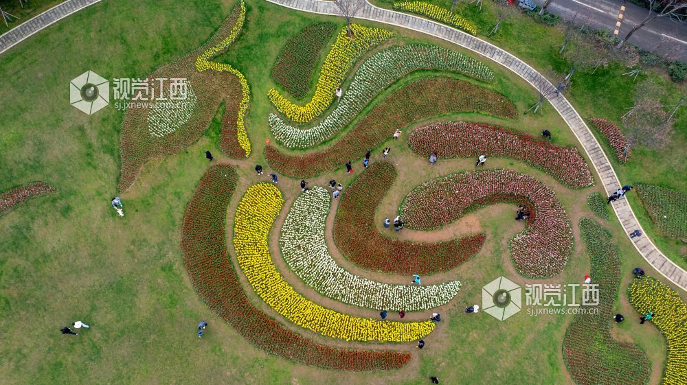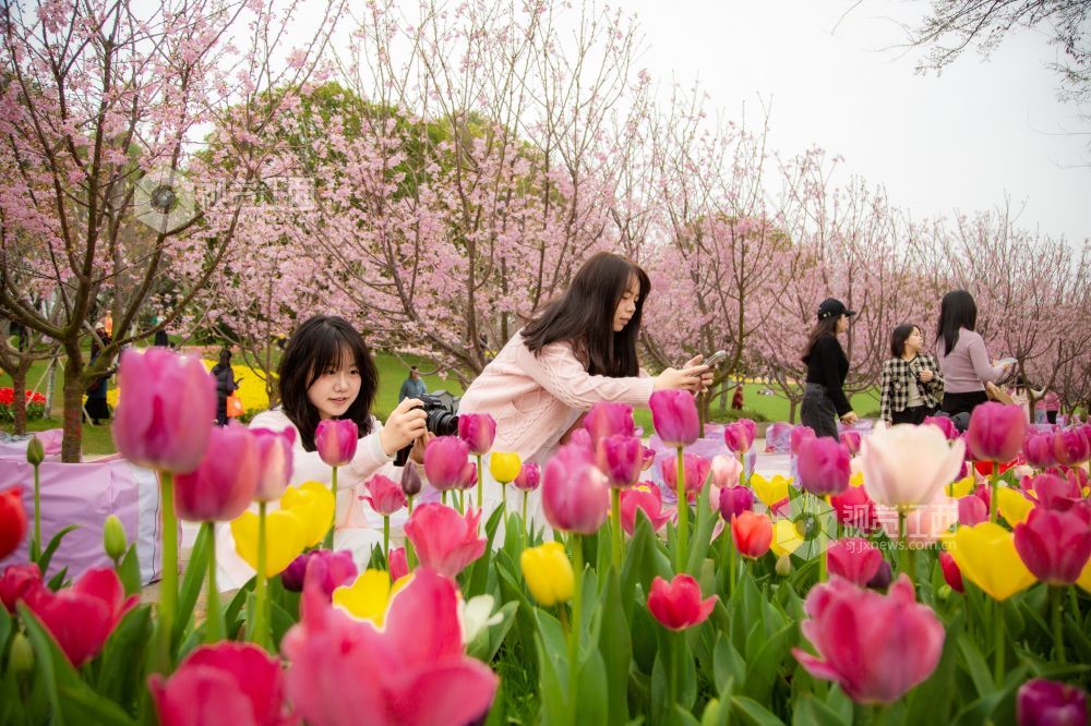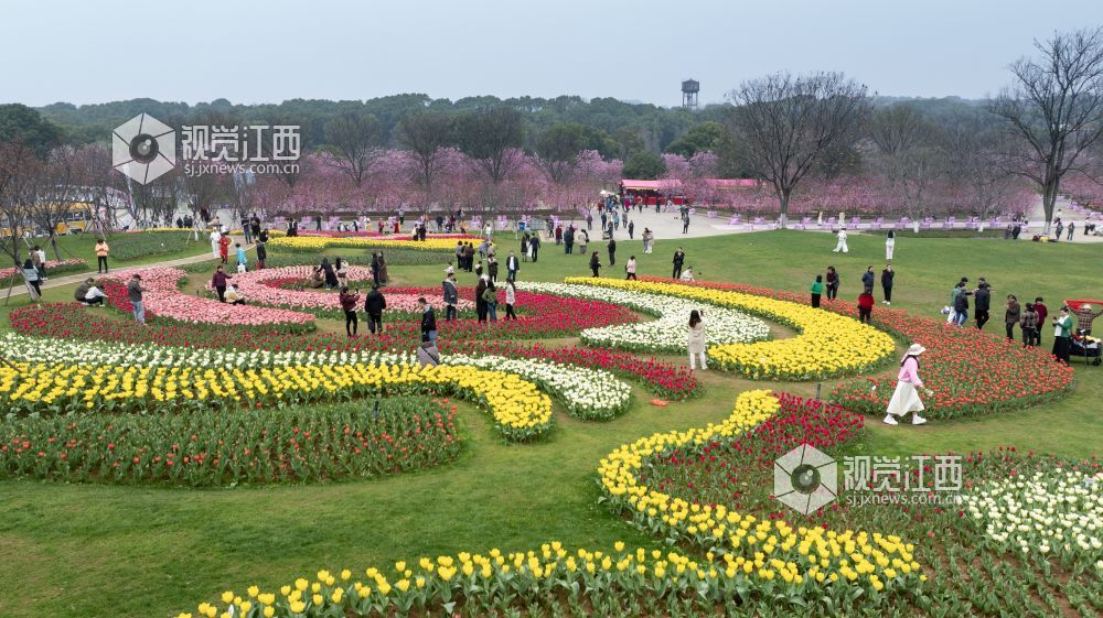 2025年3月11日,江西省南昌市凤凰沟风景区,数万株郁金香与?;ň合嗫牛奘稳俗ぷ懔髁?,成为一幅绚丽春日美景。
