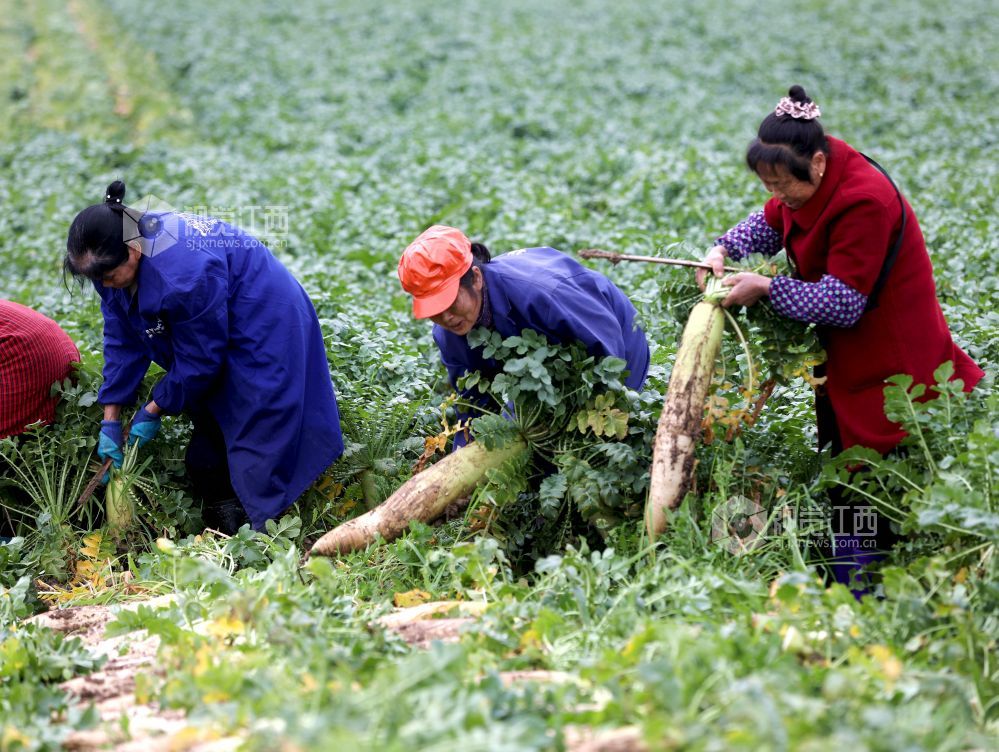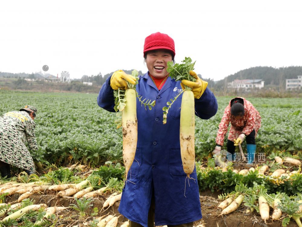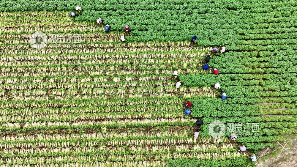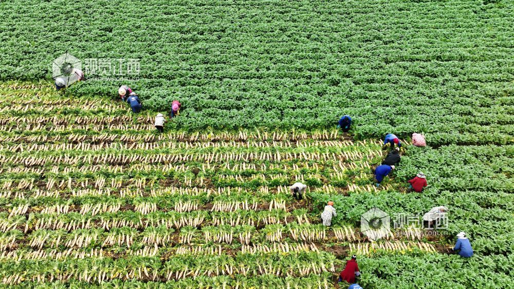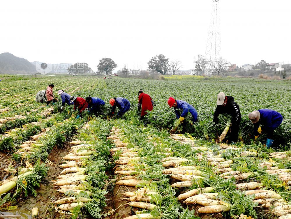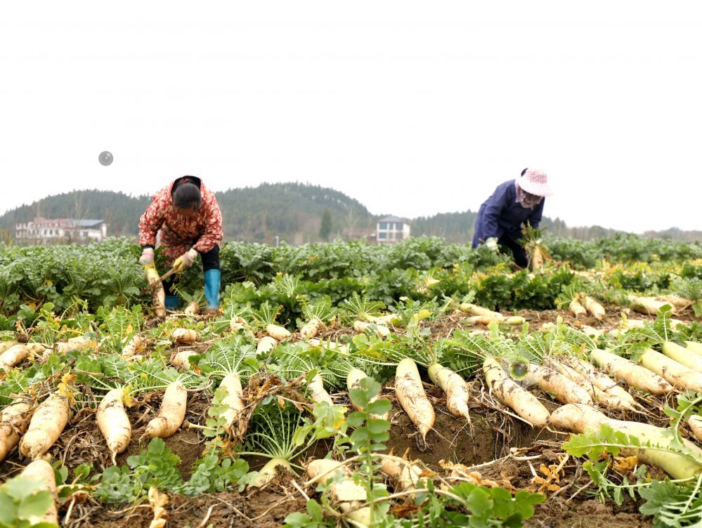 眼下,江西省分宜县洋江镇车田村300余亩萝卜迎来大丰收,田间地头“丰”景如画,基地负责人组织村民抢抓农时进行采收,准备运往山东、浙江等地农贸批发市场。