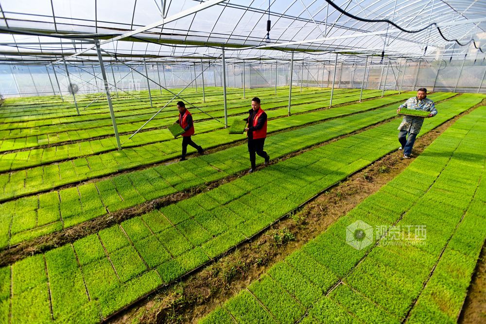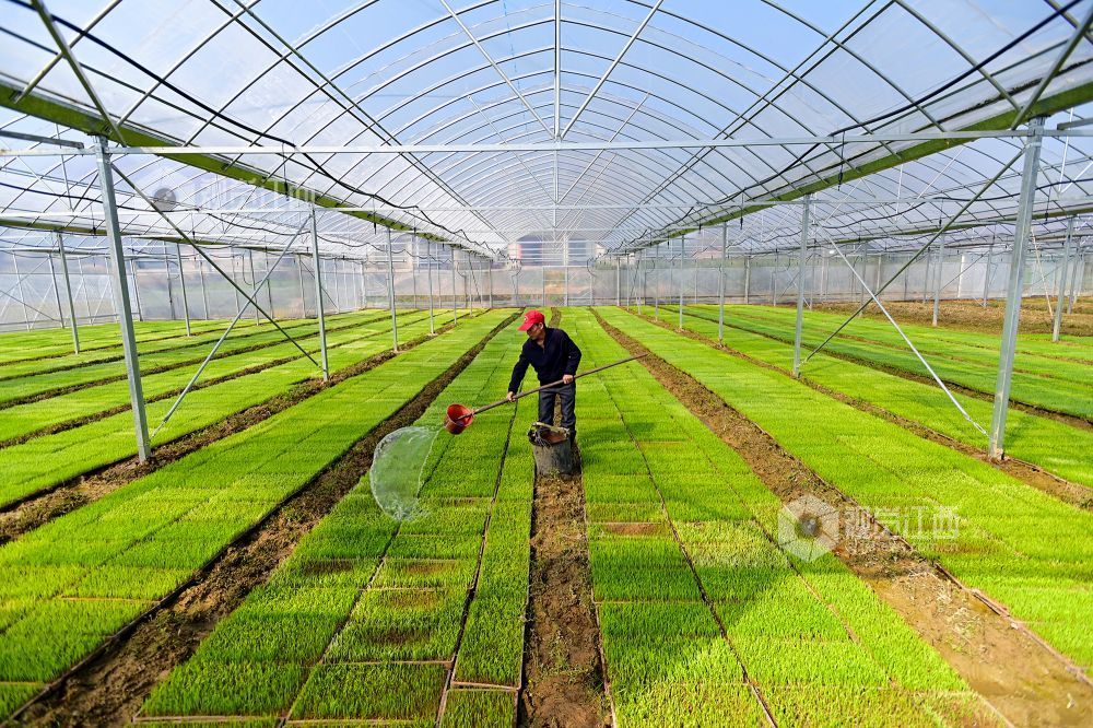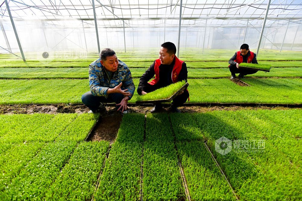 2025年3月19日,农技人员在江西省宜春市万载县康乐街道里泉村农业智能育秧工厂指导水稻秧盘管理。江西省宜春市万载县康乐街道里泉村种粮大户抢抓农时,通过智能化育秧工厂等模式开展早稻集中育秧,为春耕生产“加速”。