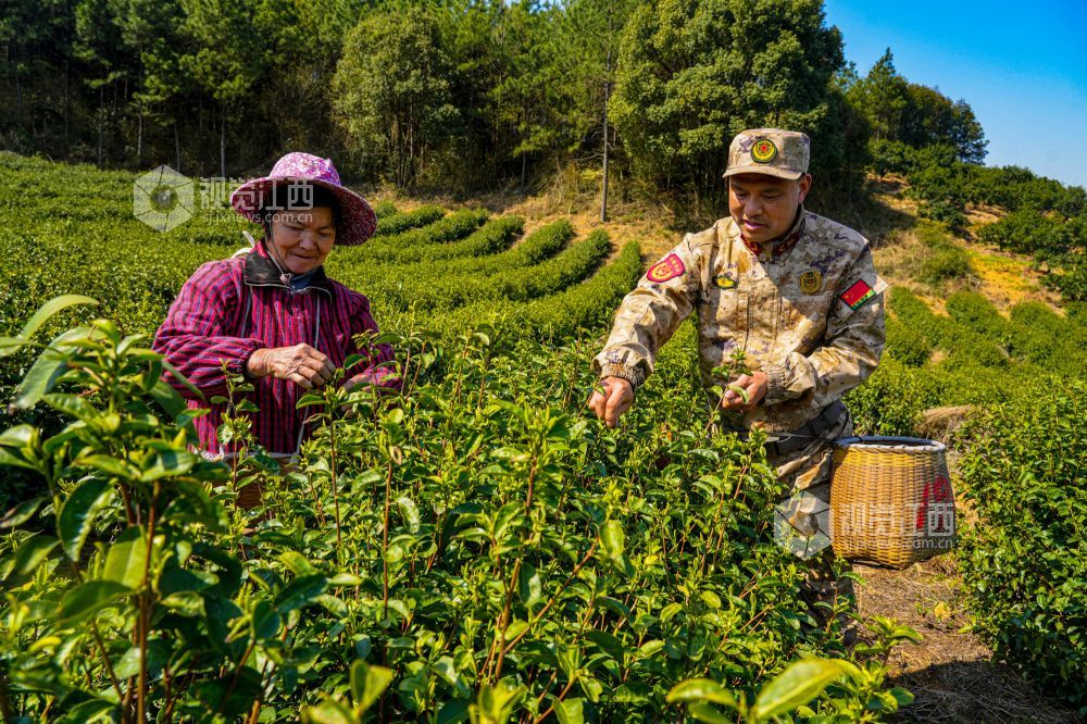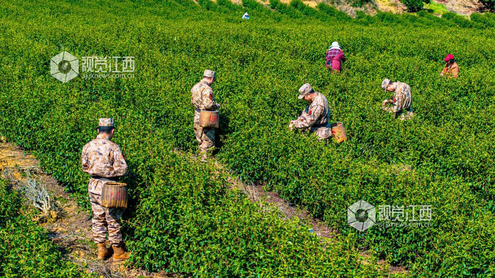 3月20日,正值春茶采摘期,峡江县人武部组织民兵走进江西省吉安市峡江县水边镇的山间茶林,义务帮茶企、农户采摘第一批鲜叶,助力驻地村民春耕生产。一芽一叶一抹香,一人一篓采茶忙。