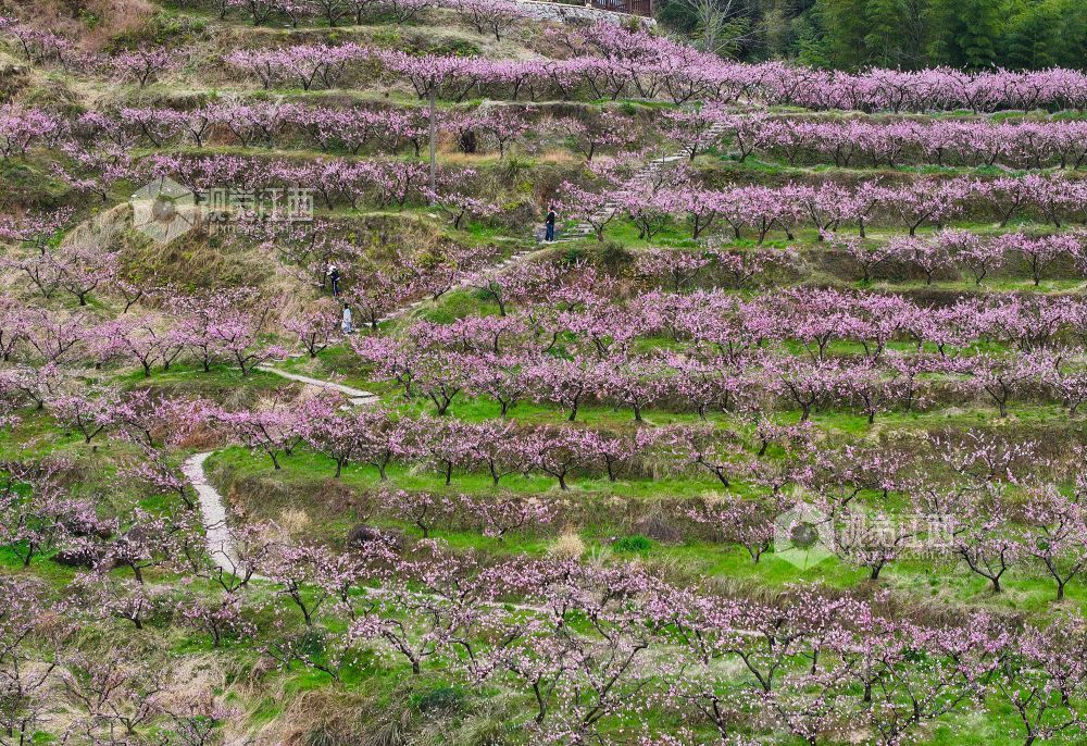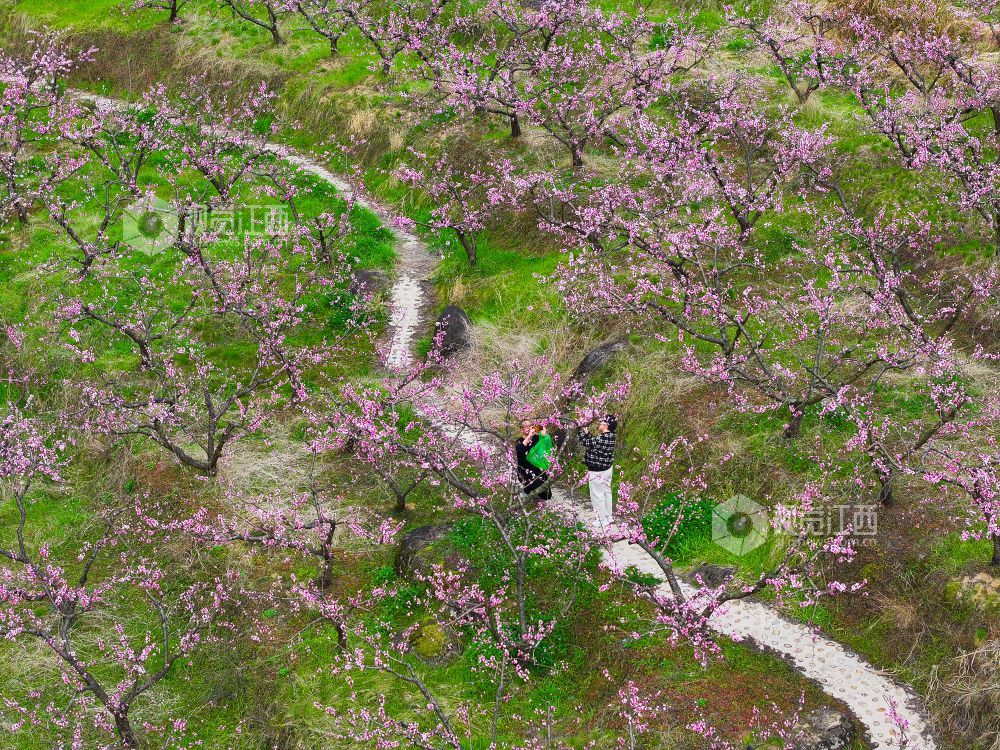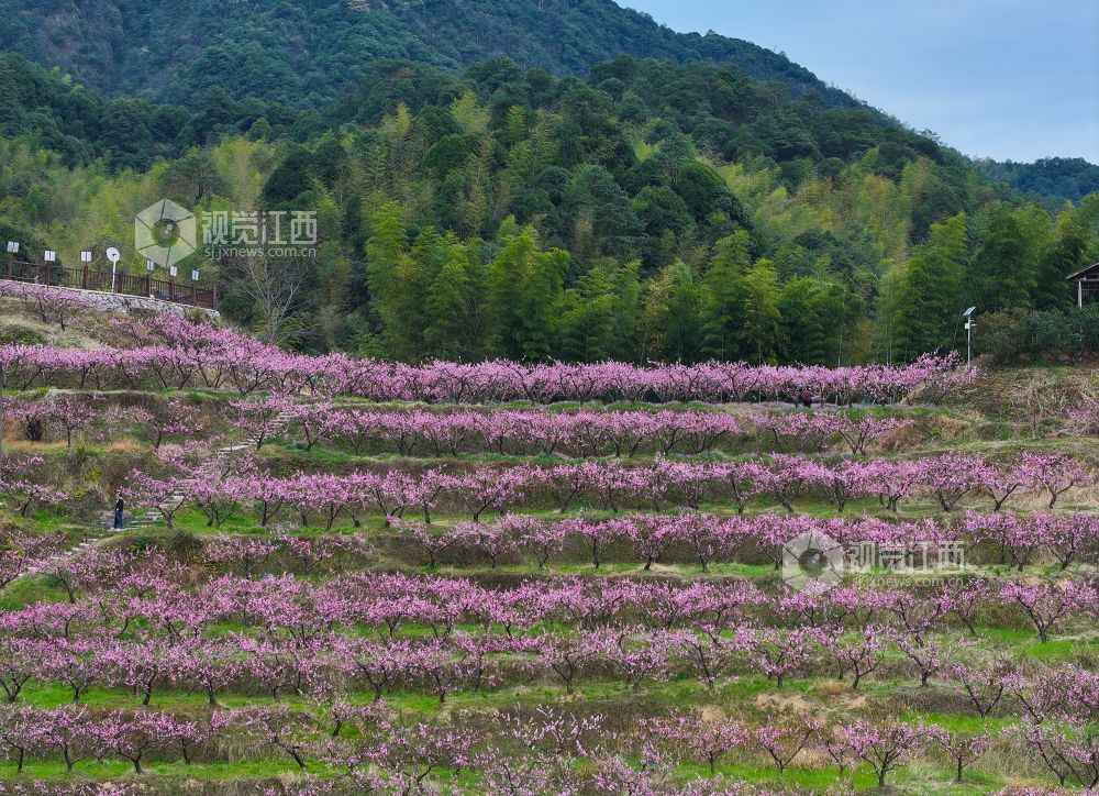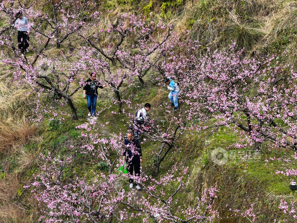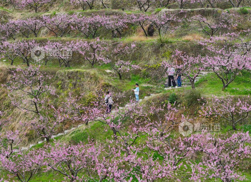 2025年3月23日,在江西省上饶市铅山县太源畲族乡蟠桃园基地,游客桃花林里游玩。连日来,铅山县气温回升,太源畲族乡蟠桃基地的桃花竞相开放,漫山遍野的桃花吸引众多游客前来赏花拍照,感受春天的气息。