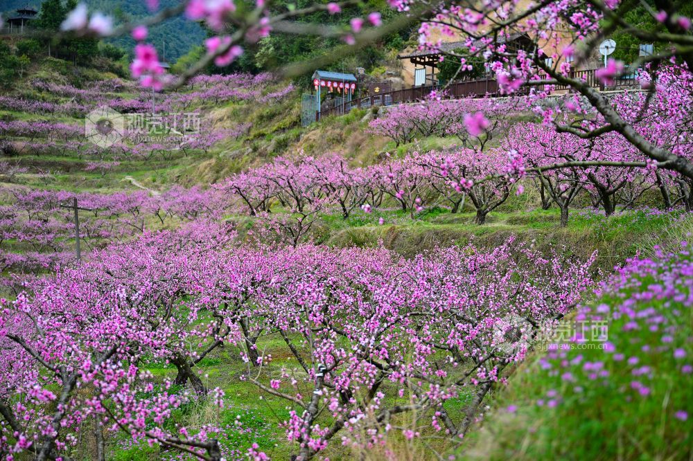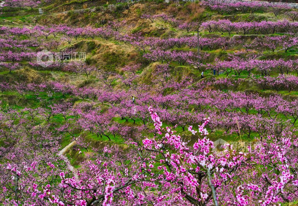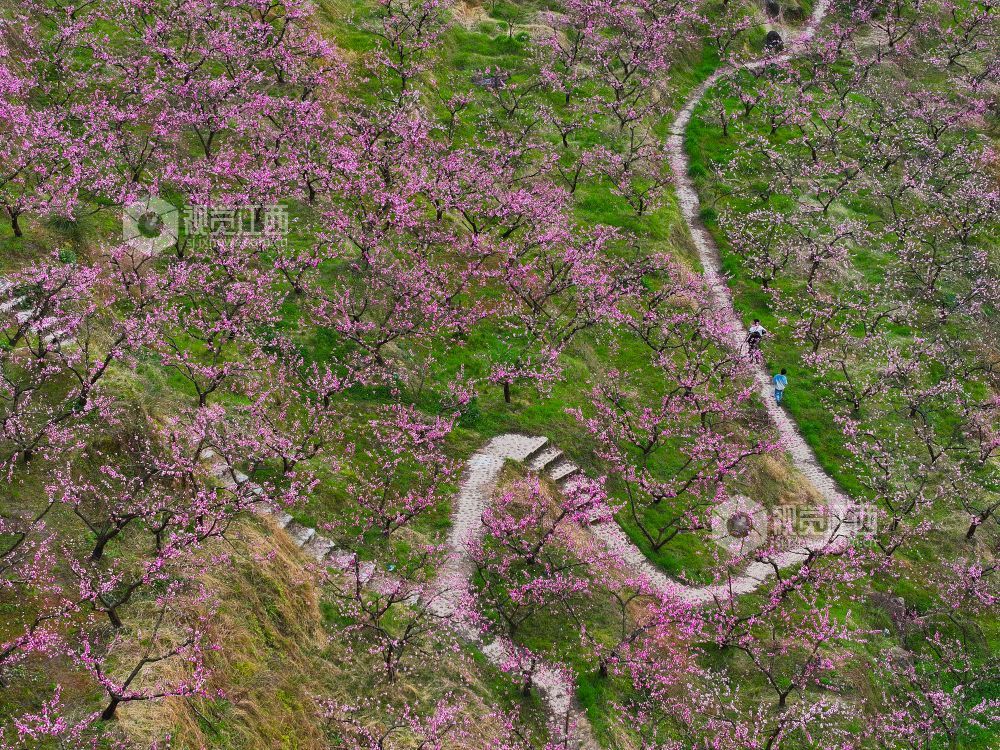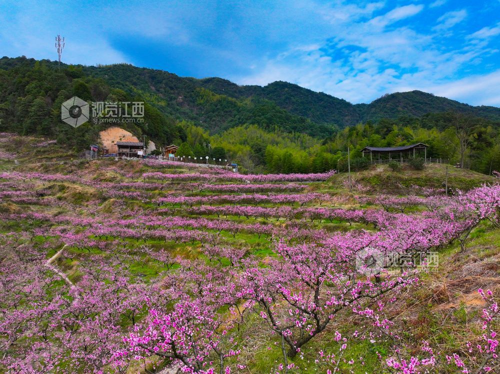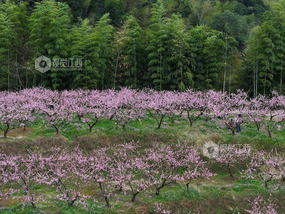 2025年3月23日,在江西省上饶市铅山县太源畲族乡蟠桃园基地,游客桃花林里游玩。连日来,铅山县气温回升,太源畲族乡蟠桃基地的桃花竞相开放,漫山遍野的桃花吸引众多游客前来赏花拍照,感受春天的气息。
