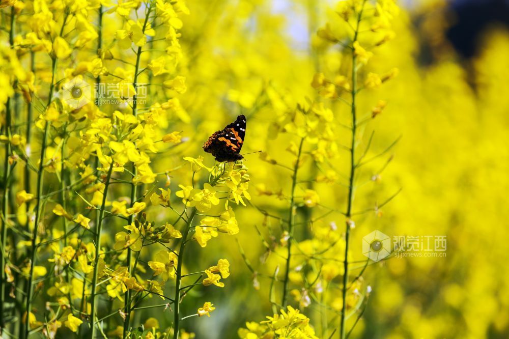 3月24日,位于江西省新余市渝水区良山镇的黄虎村,山上的野花,路边的桃花,田野里的油菜花,形成了花的海洋,蝴蝶、蜜蜂等在花丛中翩翩起舞,形成了一幅美丽的生态画卷。