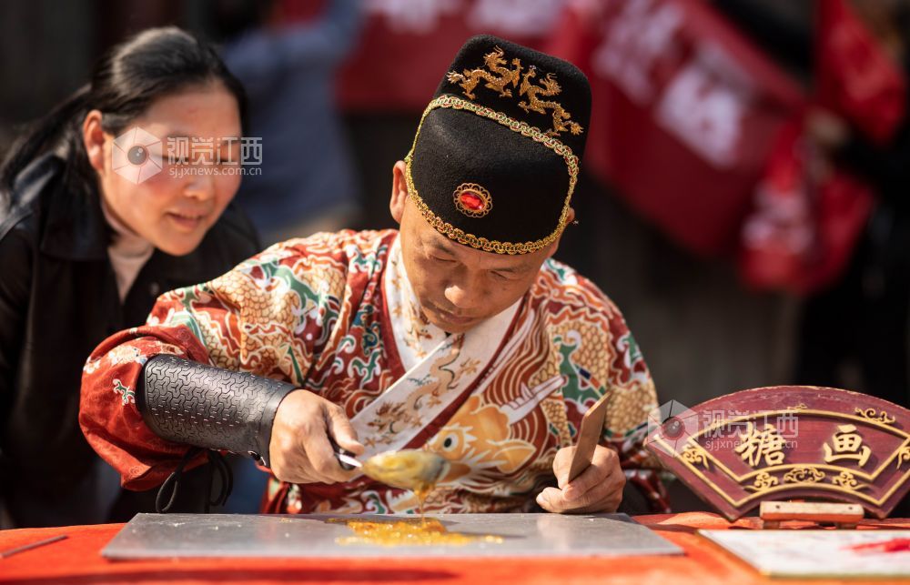 3月25日,江西省永新县在繁荣社区举办“非遗进社区”新时代文明实践活动。糖画、木雕、油纸伞等非遗传承人通过“展示+互动”模式,让居民在沉浸式体验中感受非遗文化魅力。