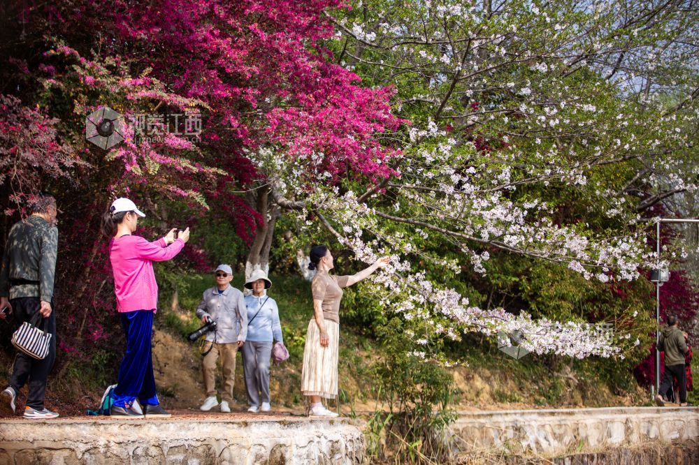 2025年3月27日,江西省南昌市省林科院内樱花盛开,千株樱花正以漫天飞舞之姿,为春天写下最美的诗意。无数游人漫步粉白烟霞的樱花树下,拍照留影,享受着美好春光。