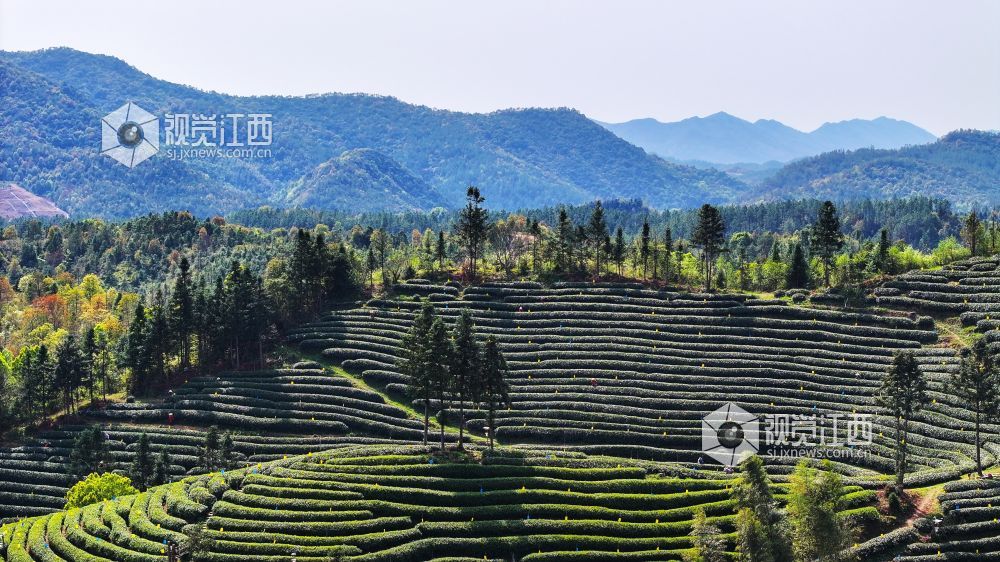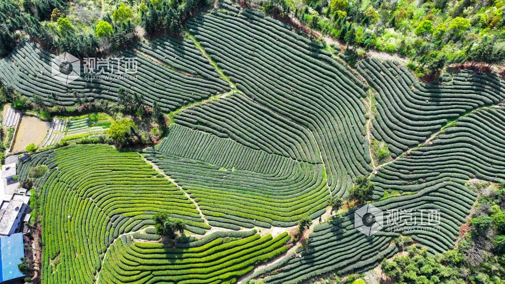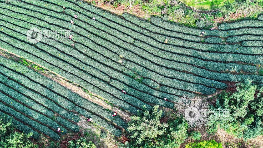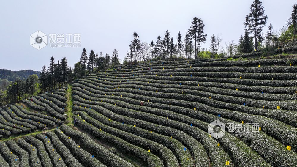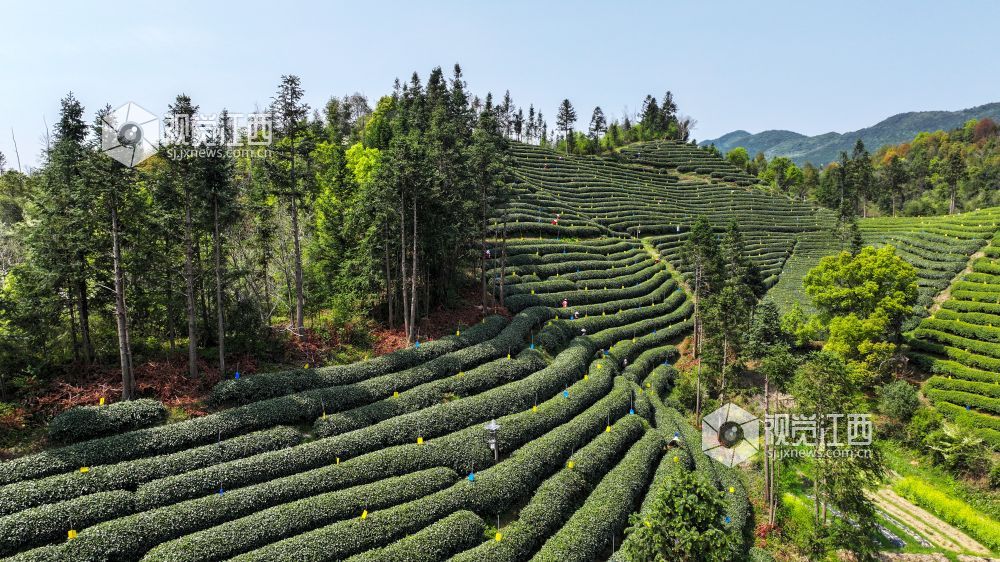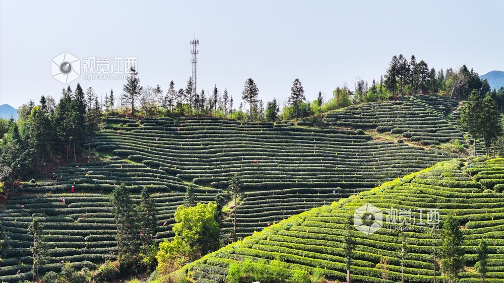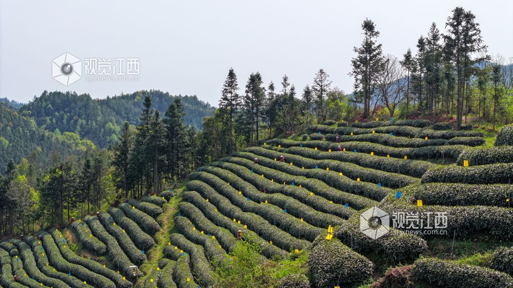 2025年4月2日,江西省吉安市吉水县螺田镇老山村盘岭生态有机茶场,茶农抢抓晴好天气采摘采摘春茶。进入春茶采摘旺季,江西省吉安市吉水县各地茶农抢抓农时进行采摘,供应市场。