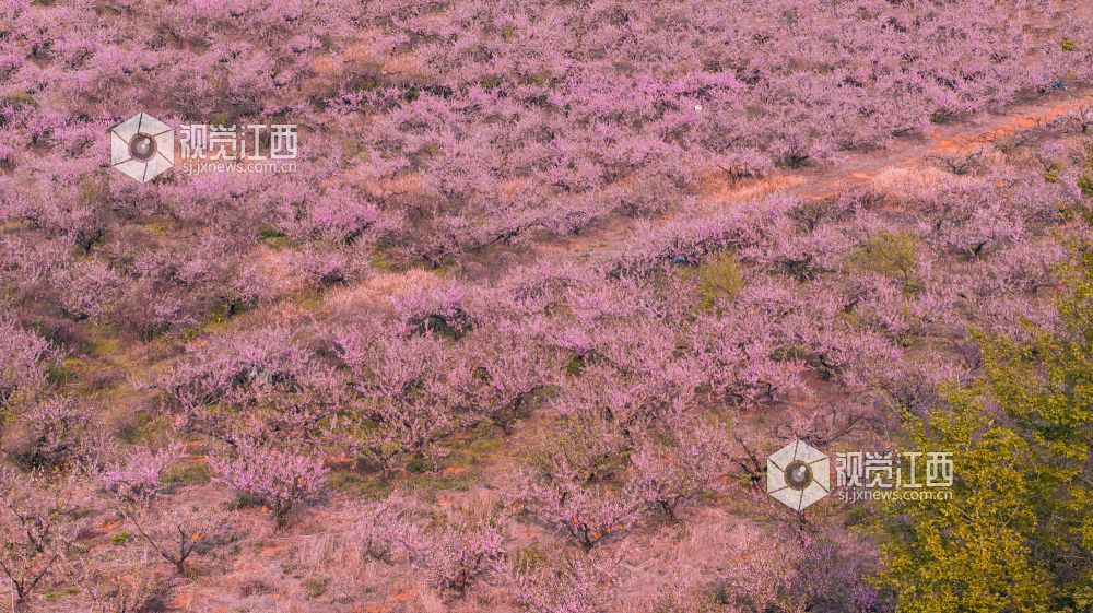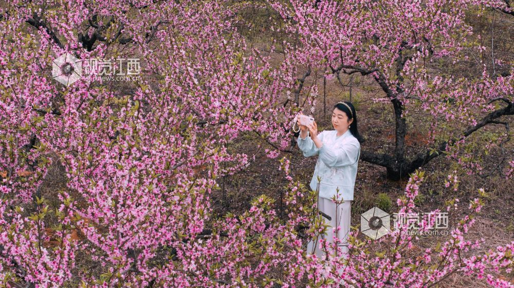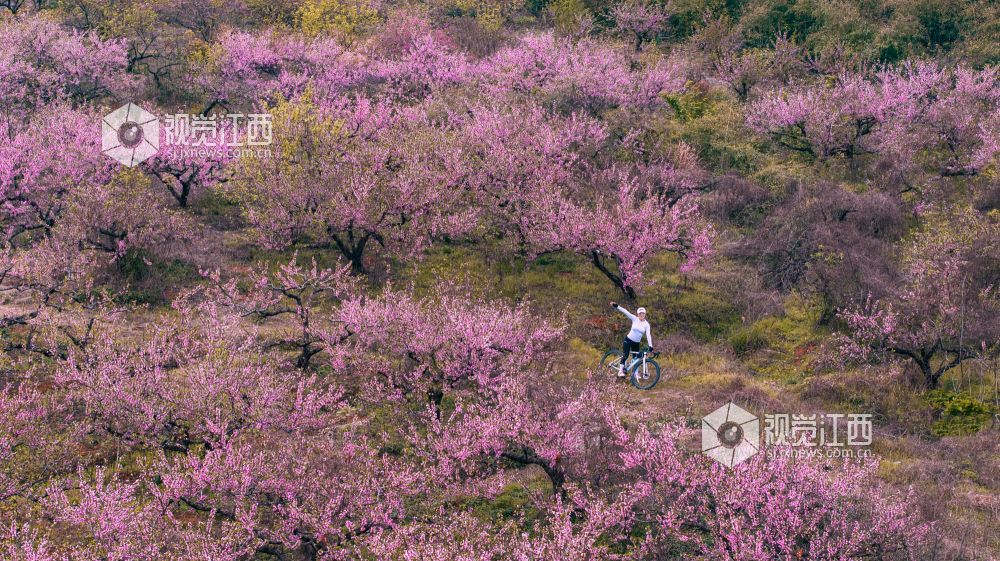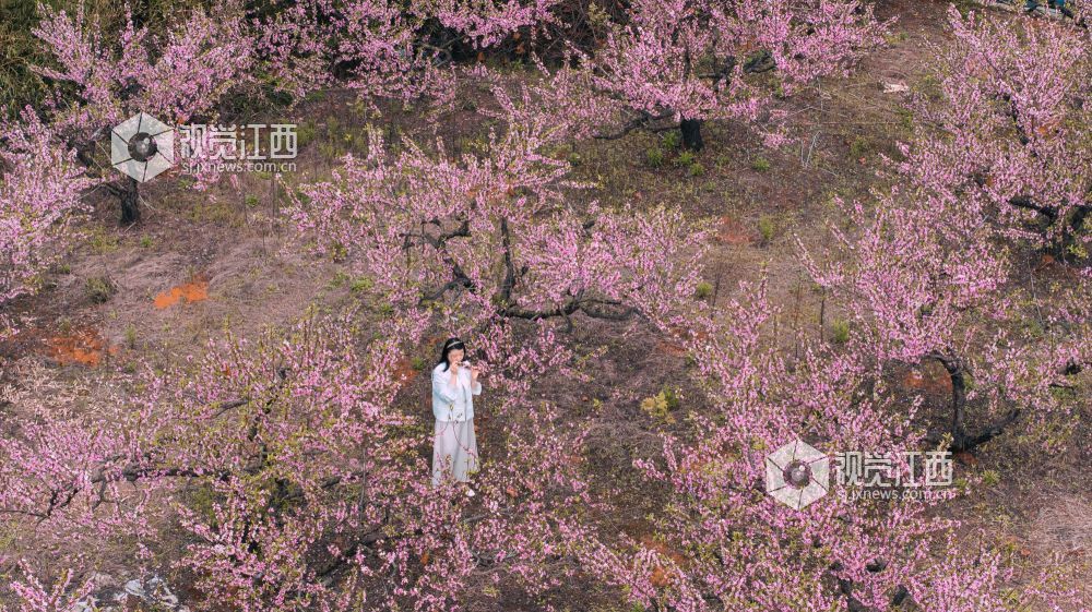 近日,江西省吉安市峡江县水边镇寒梅岭黄桃基地呈现出一派烂漫春光。30多亩黄桃花迎春盛放,如云似霞的花海吸引众多游客前来踏青打卡,为乡村振兴注入了新活力。游客们身着鲜艳服饰,在花海中拍照、跳舞,尽享春意。