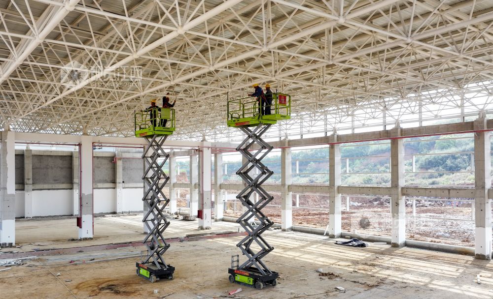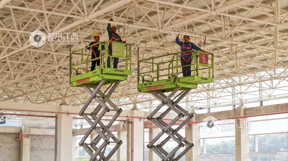 2025年4月10日,江西省瑞昌通用机场项目施工现场,工人们正在加紧施工。