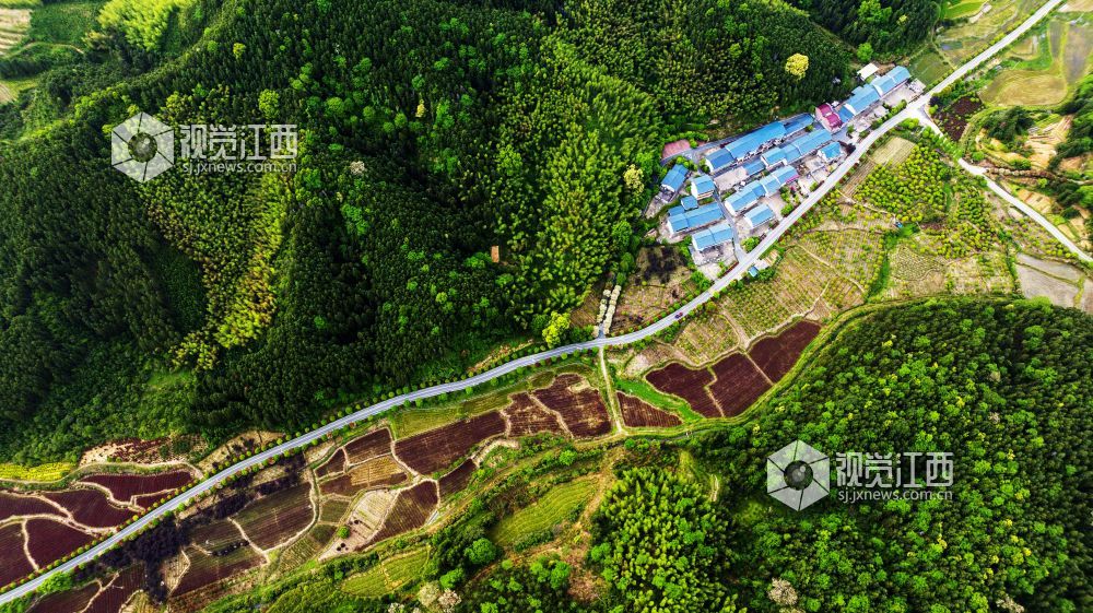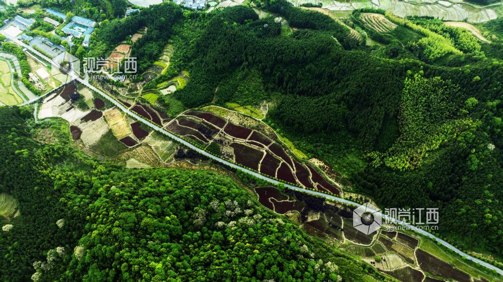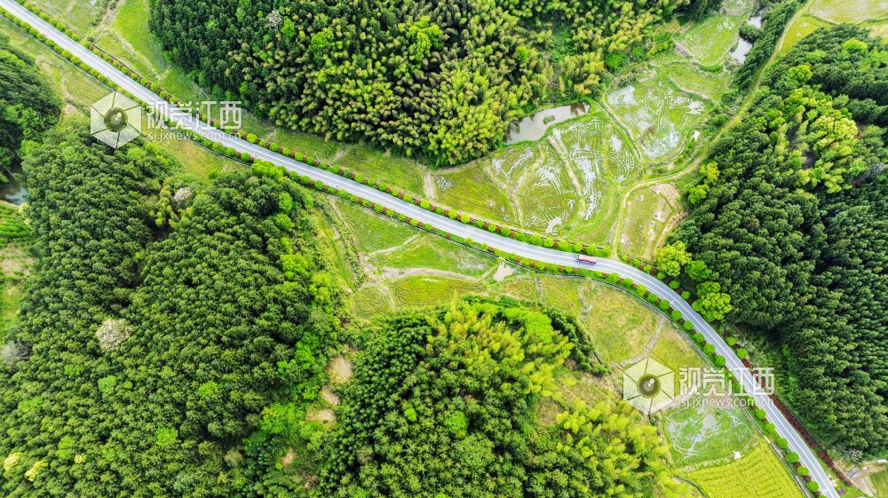 2025年4月16日,江西省新余市渝水区良山镇下保村,行驶在乡村四好公路上的汽车,与错落有致的民居、连绵起伏的山峦、满山遍野的野花、纵横交错乡村小道相映成趣,秀美如画。