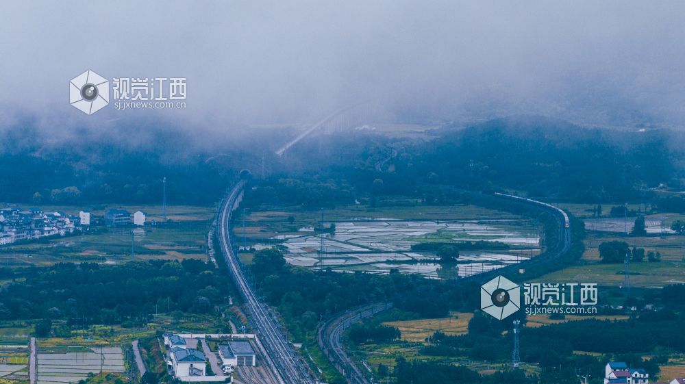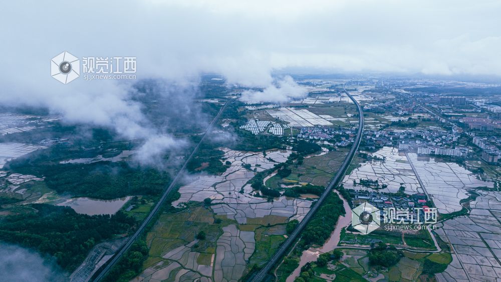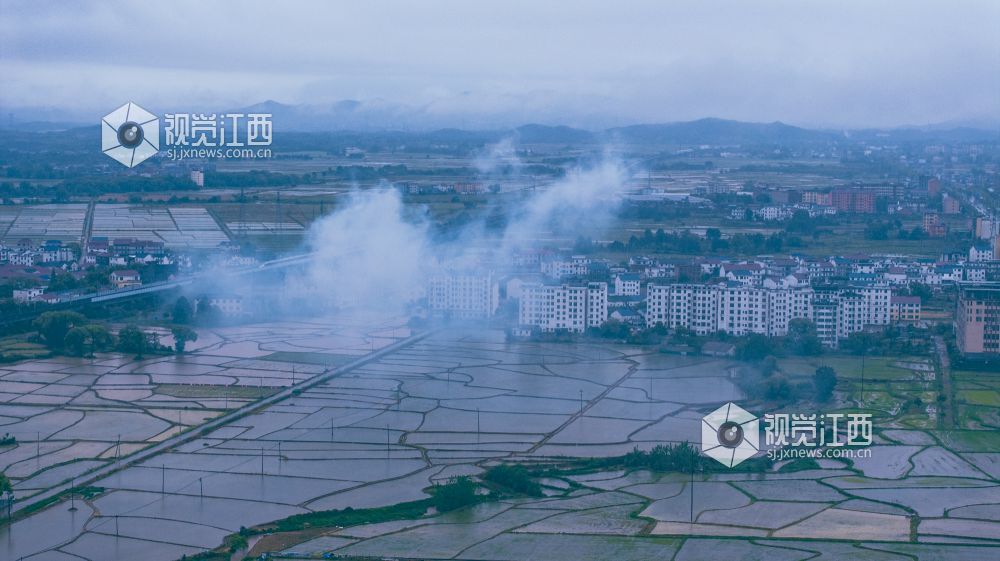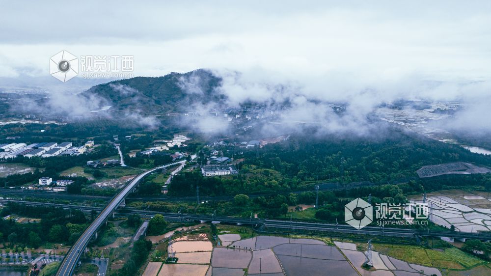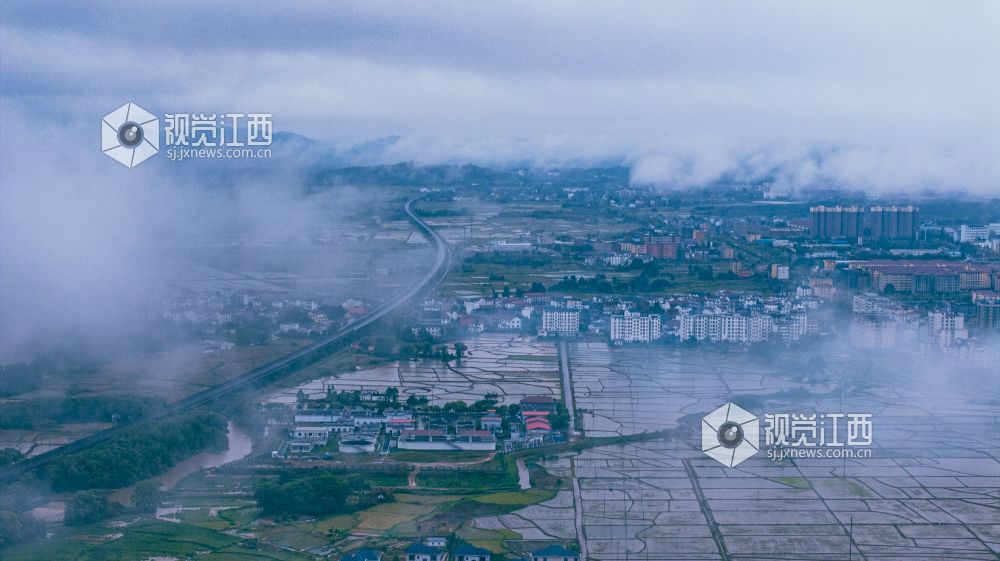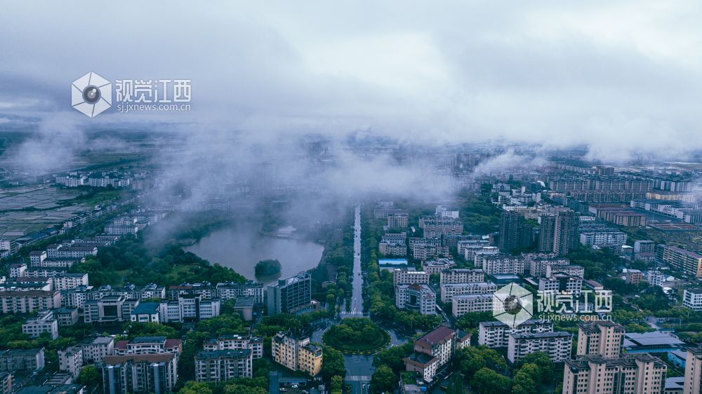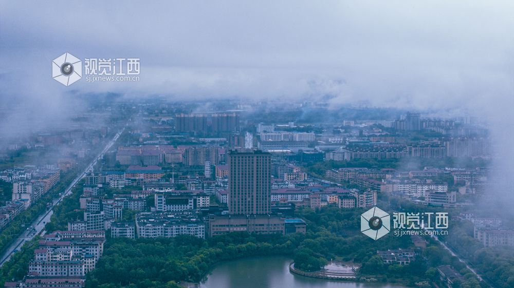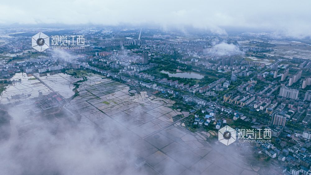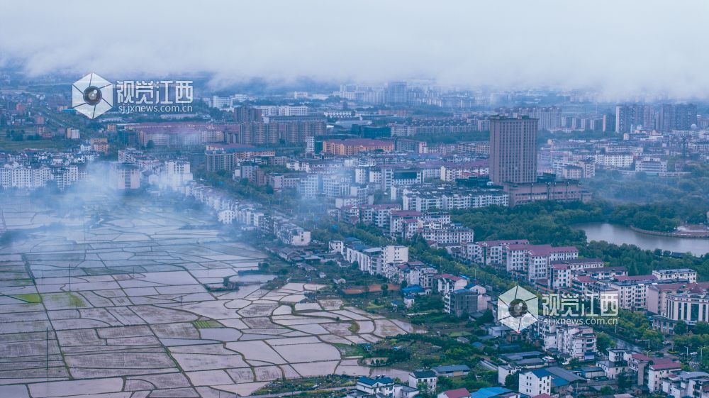 4月19日,一场春雨过后,江西省吉安市峡江县城上空云雾缭绕,城市建筑、道路、河流在云雾的笼罩下,若隐若现,宛如仙境。不远处,青山叠翠、绿树成荫、云雾缠绕,雨后峡江笼罩在云雾之中,恍如身处世外桃源,一切都显得安宁而秀美。