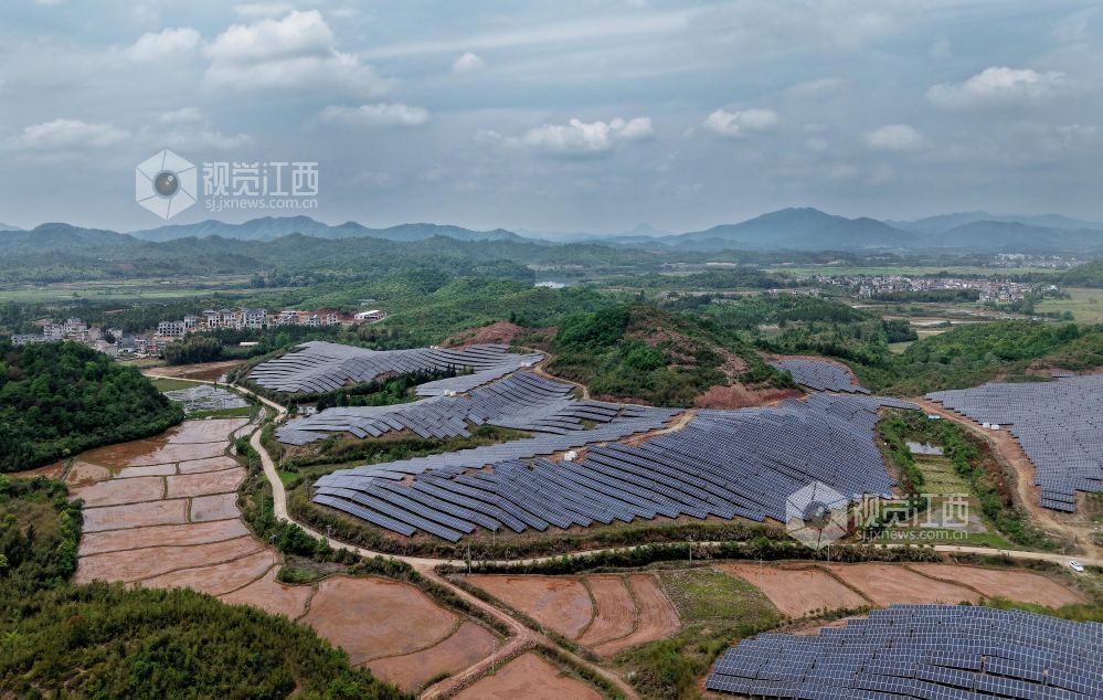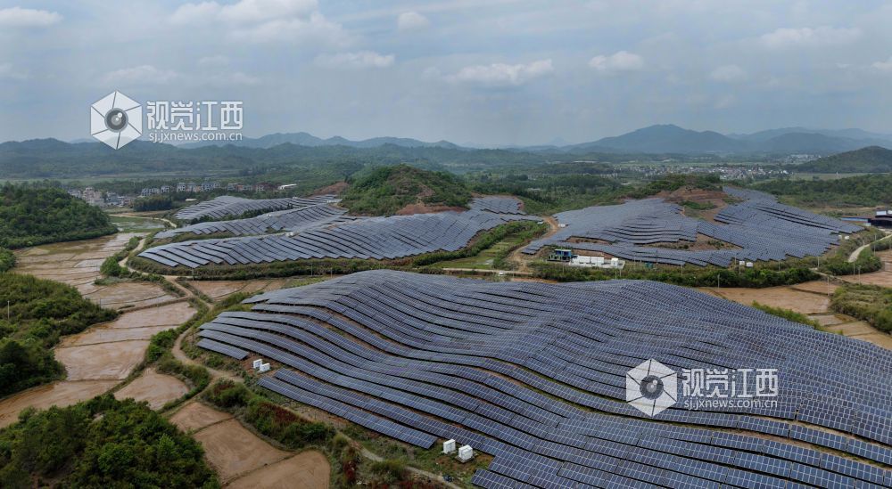 2025年4月20日,江西省德兴市香屯兰村20MW集中式光伏扶贫电站,荒山坡上的一排排光伏发电板熠熠生辉,源源不断地输出绿色电能。