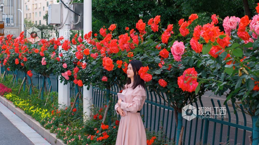 4月25日,江西省吉安市新干县满城月季陆续进入盛花期,城区公园、主干道、高铁站沿线逾万株月季次第绽放。樱花余韵未散,月季已携万千娇色“强势接档”。无论是驾车行驶在道路上,还是悠闲地漫步公园,市民随时都能与月季邂逅,收获一份浪漫惊喜。