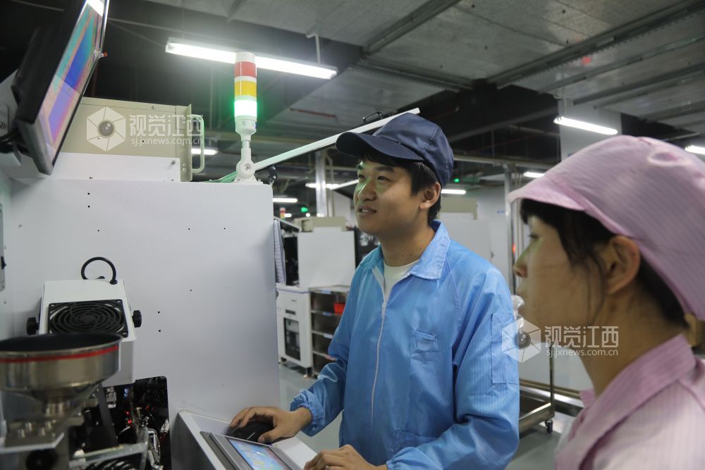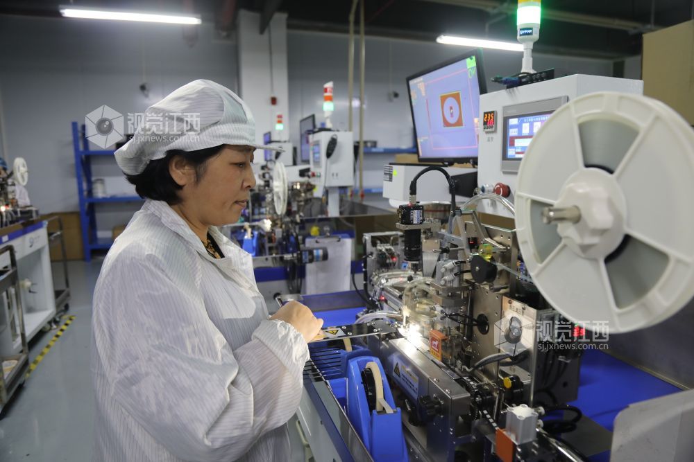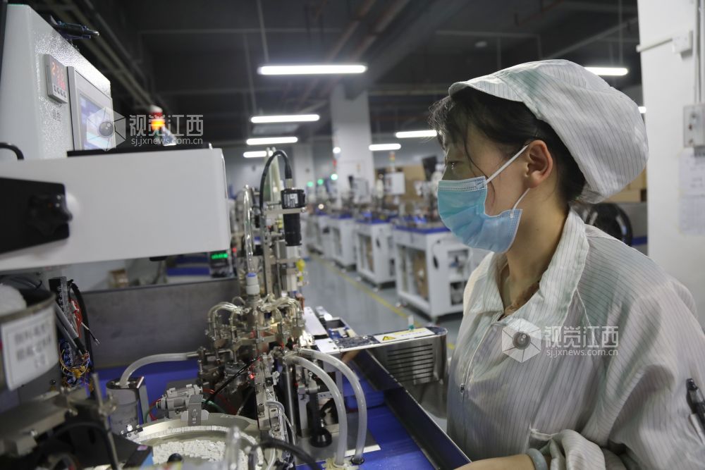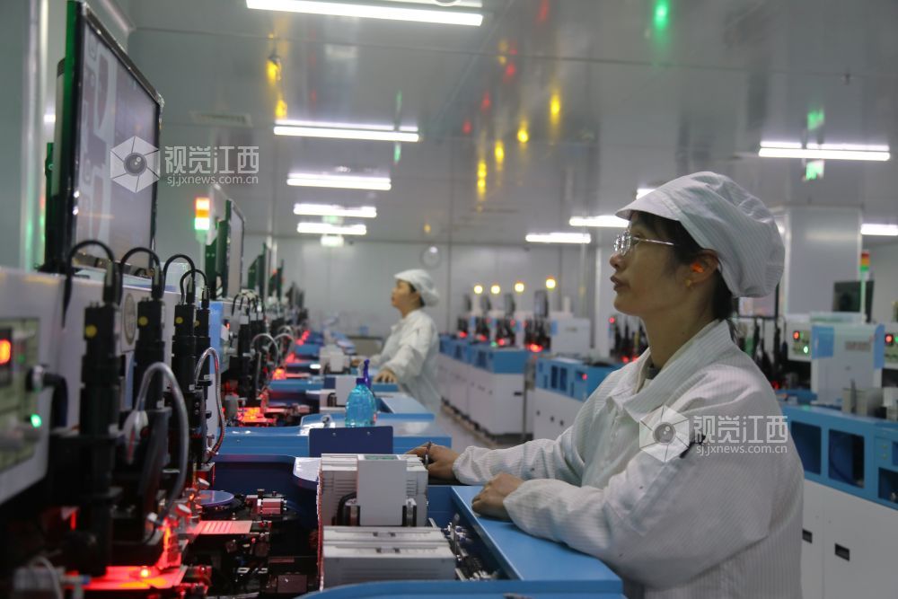 4月29日,江西省莲花县工业园区一光电科技有限公司车间,工人和技术人员正在各自的岗位上忙碌,加紧生产供应国内外市场。