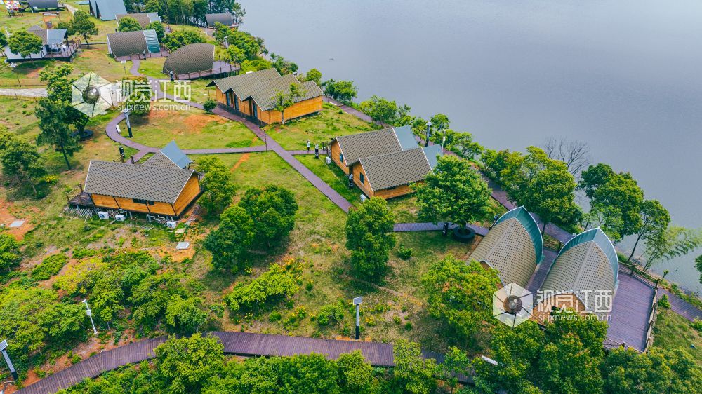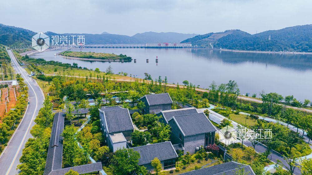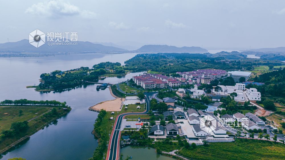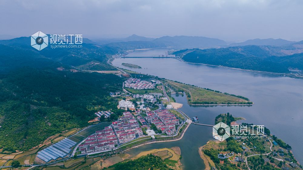 5月1日,航拍蒋沙渔村,这颗镶嵌在赣江之滨的明珠,在雨后的清晨,当浓雾散尽,旭日东升时,显得格外迷人。在气势磅礴的峡江水利枢纽不远处的玉峡湖畔,一幢幢整齐的小洋楼映入眼帘。这里山清水秀,环境优美,村内道路宽敞,民风淳朴。曾因2009年峡江水利枢纽工程的启动,整体搬迁,再次建起了新村。如今,蒋沙村充分挖掘地方特色,全面利用乡村资源,将打渔文化和乡村产业、乡村旅游相融合,让这个曾经默默无闻的小渔村变成了远近闻名的“网红村”,每年都吸引着无数游客来这里打卡。