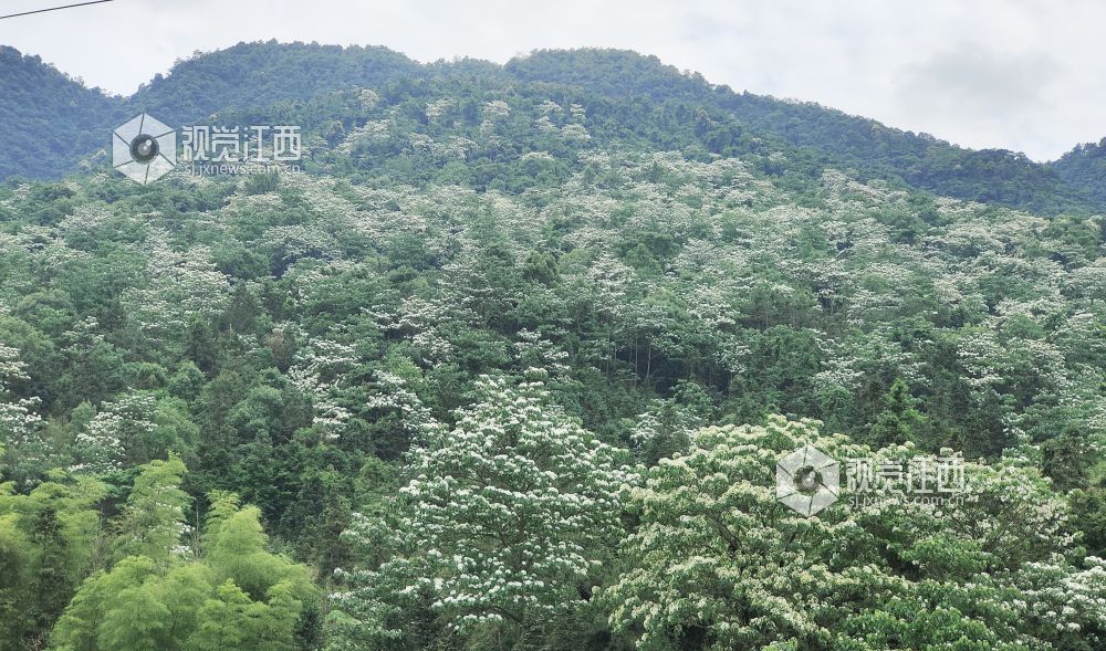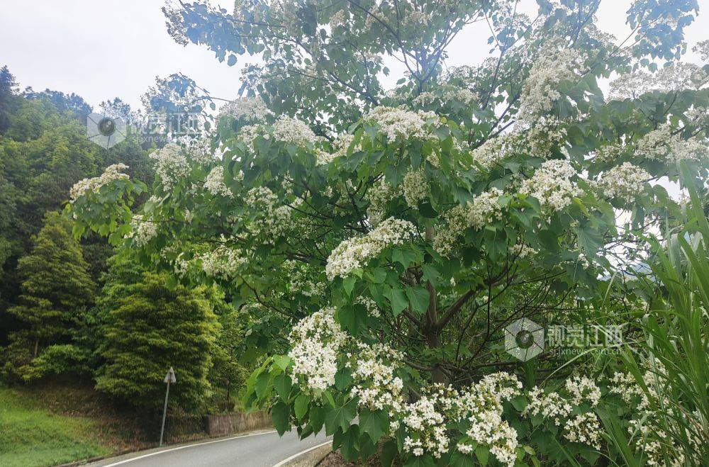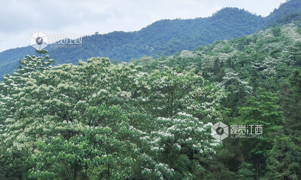 5月6日,江西省安福县坳上林场焦坑山场百亩桐花竞相绽放,似雪海翻涌,为林区披上了梦幻的白纱,吸引众多游客和摄影爱好者前来观赏、记录这一自然美景。