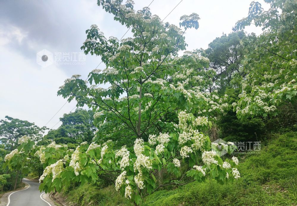 每年春末夏初,坳上林场的油桐树便开始吐露芳华。漫步林间,洁白的花瓣层层叠叠,簇拥着金黄的花蕊,微风拂过,花朵摇曳生姿,空气中弥漫着淡淡的甜香,桐花盛开时,花瓣随风飘落,宛如雪花纷飞,故有“五月雪”的美誉。