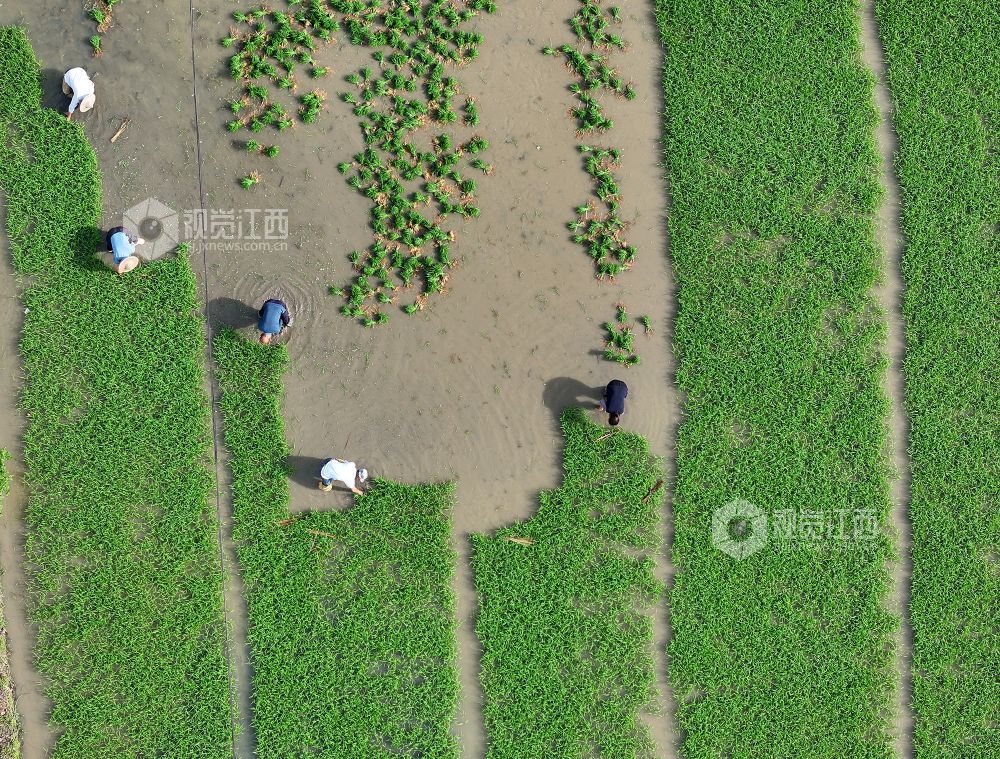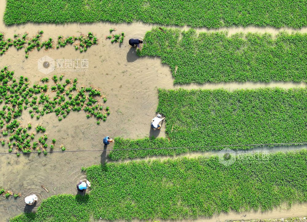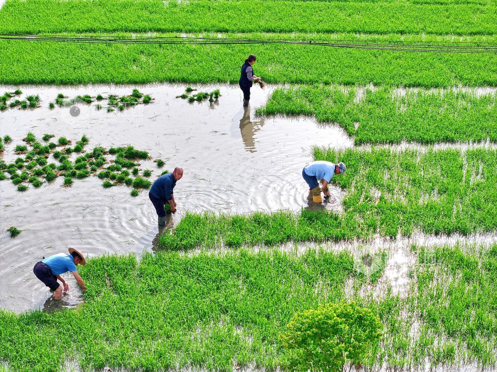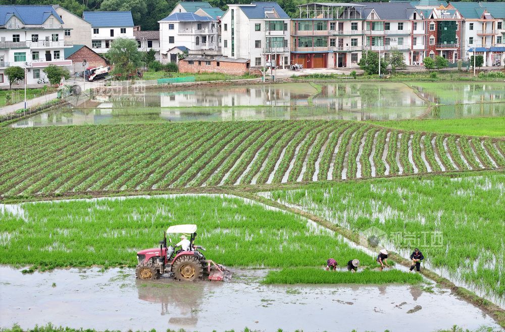2025年5月9日,在江西省上饶市铅山县湖坊镇中李村,村民正在田间忙碌。当前,已进入立夏时节,当地农民抢抓农时进行插秧工作,田间地头一派忙碌景象,共待丰收粮满仓。