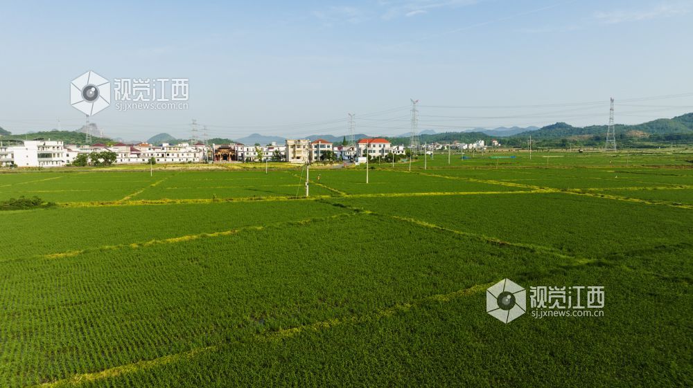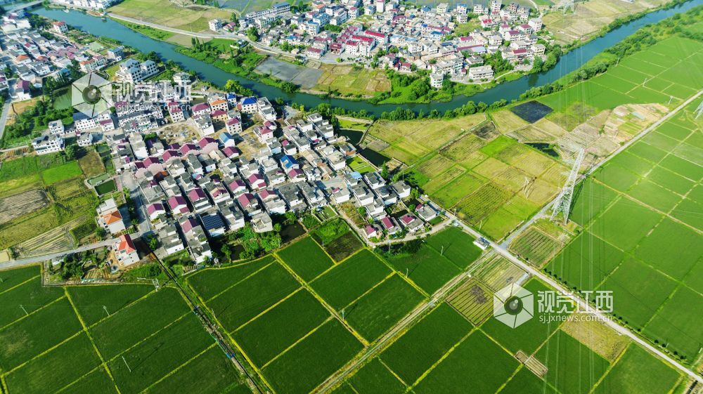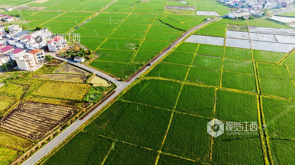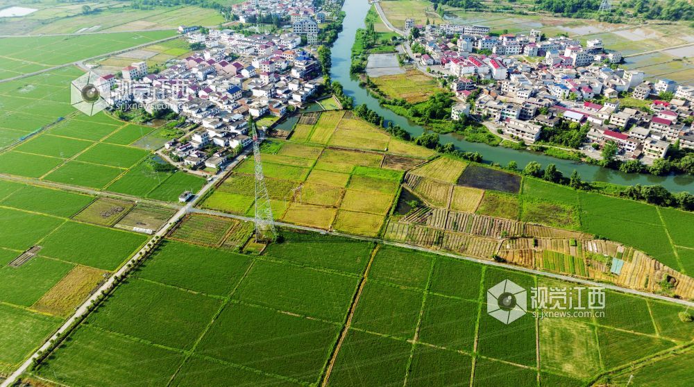 2025年5月11日,位于江西省新余市仙女湖区观巢镇洋潭村的孔目江灌区,高标准基本农田一片碧绿,与村庄、道路、河流相映成趣,构成了一幅生机勃勃的乡村初夏画卷。