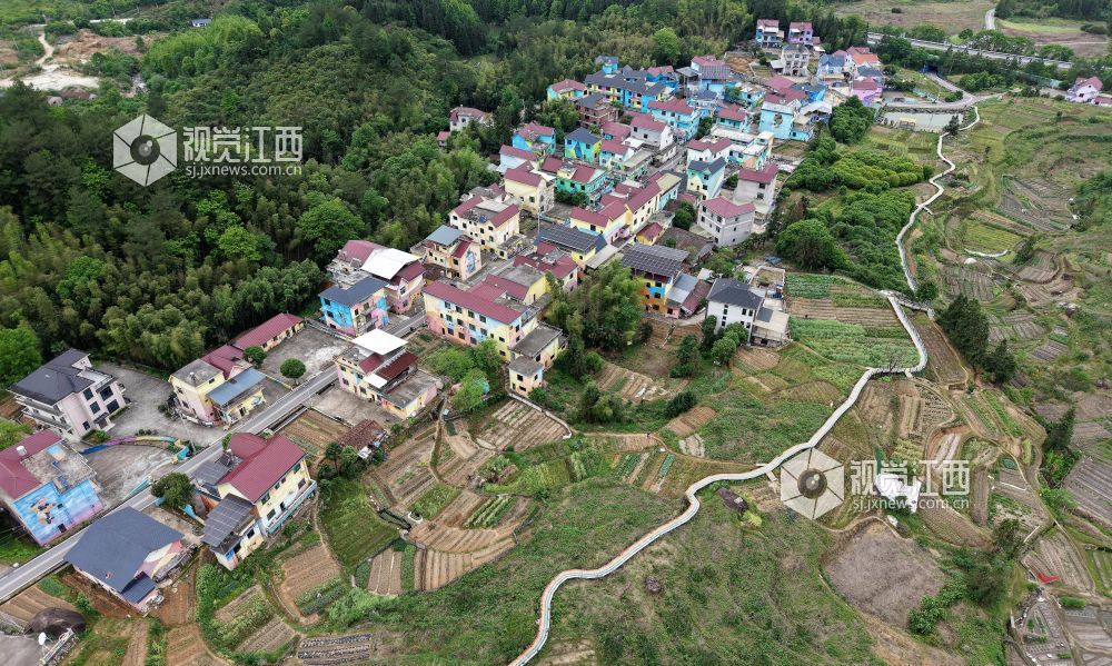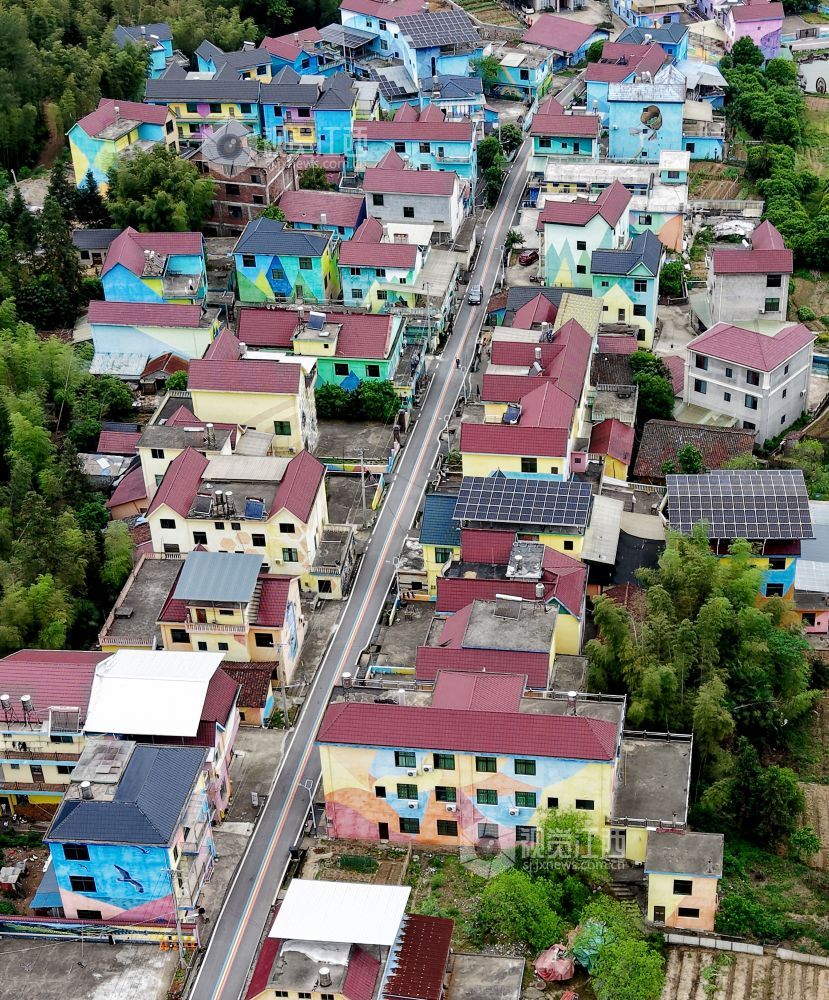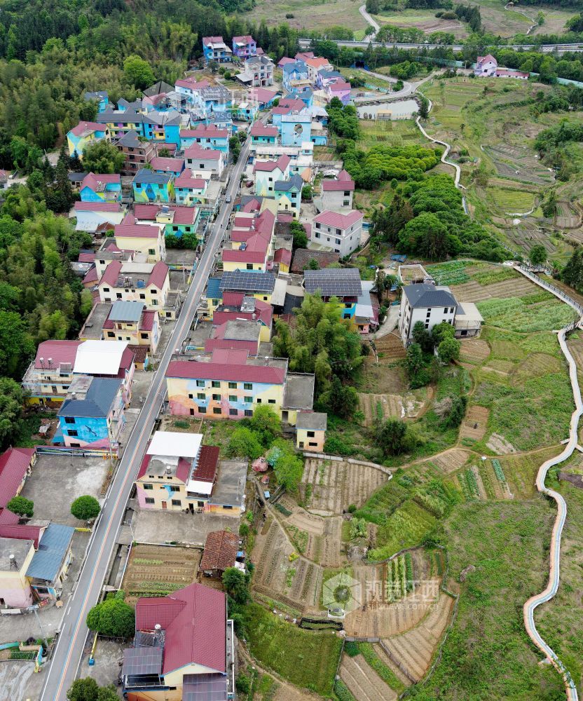 2025年5月10日,航拍江西省德兴市大茅山“童话村”五彩缤纷,美不胜收。