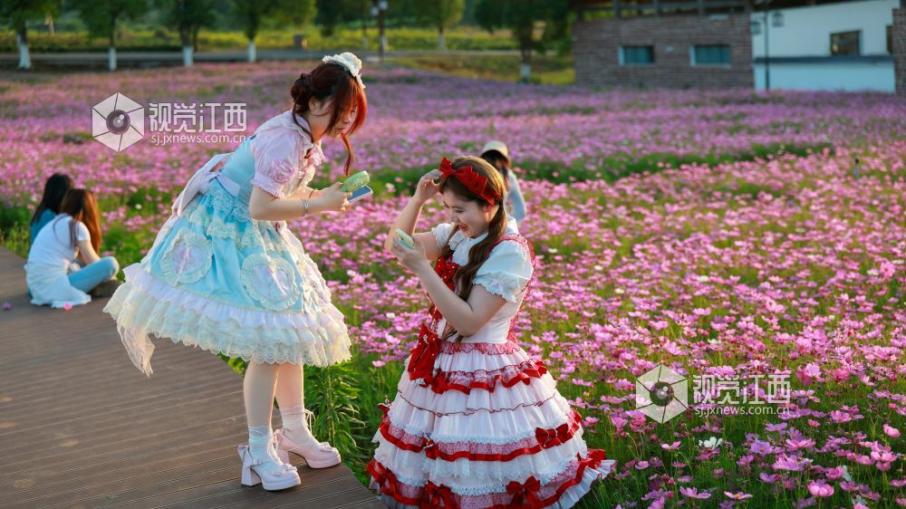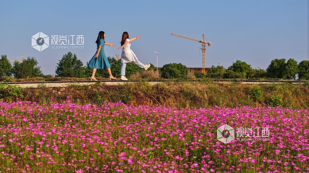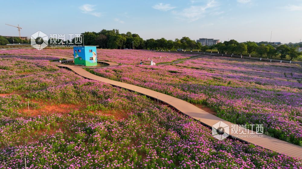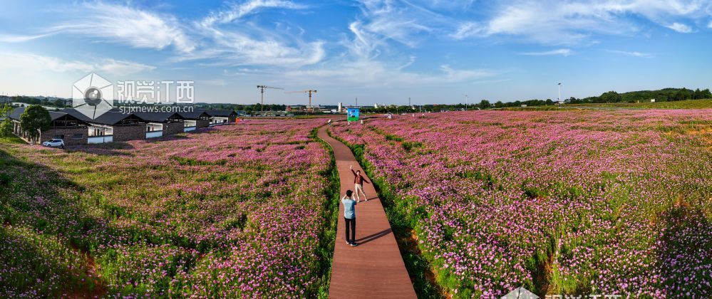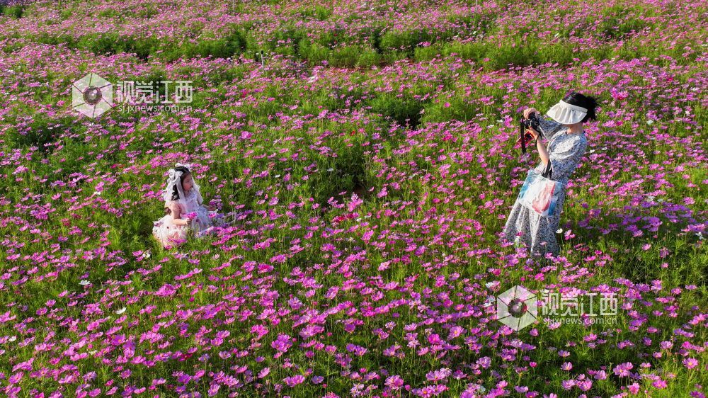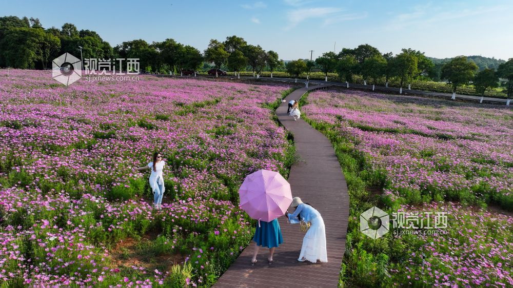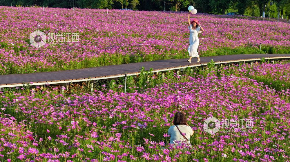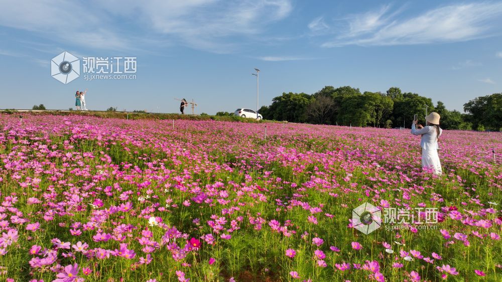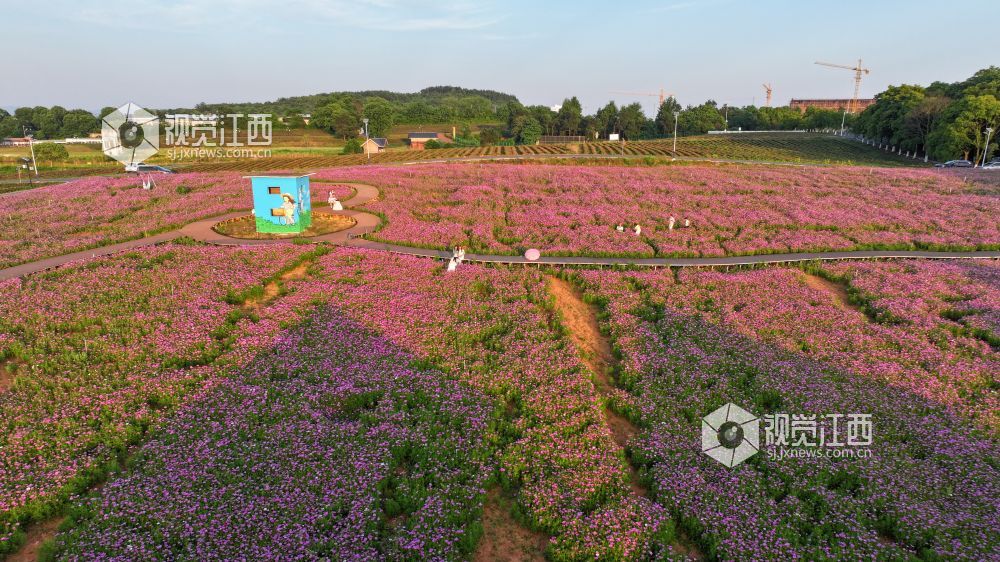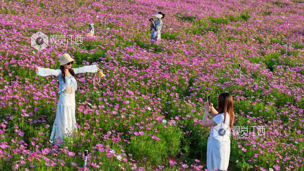 2025年5月13日,江西省吉安市吉州区兴桥镇丰田景区,大片格桑花海引来了众多游客来这里打卡拍照,在让人们在这里感受花海的浪漫与幸福。