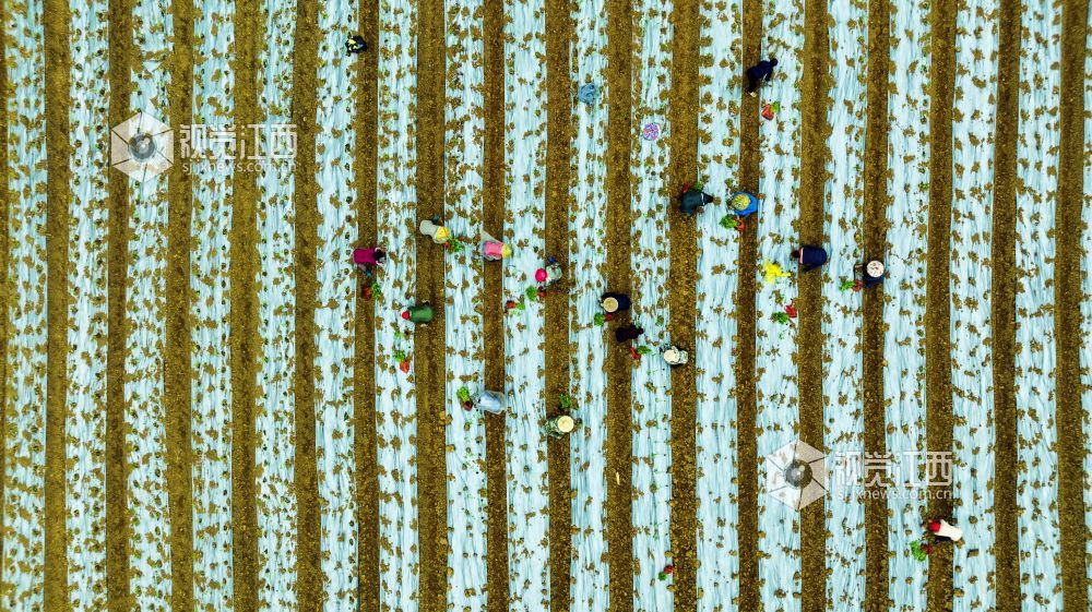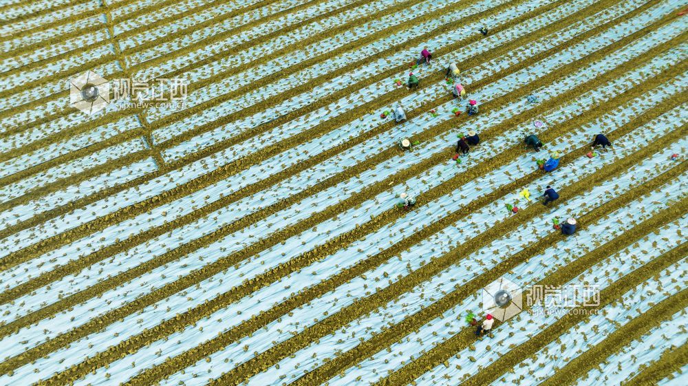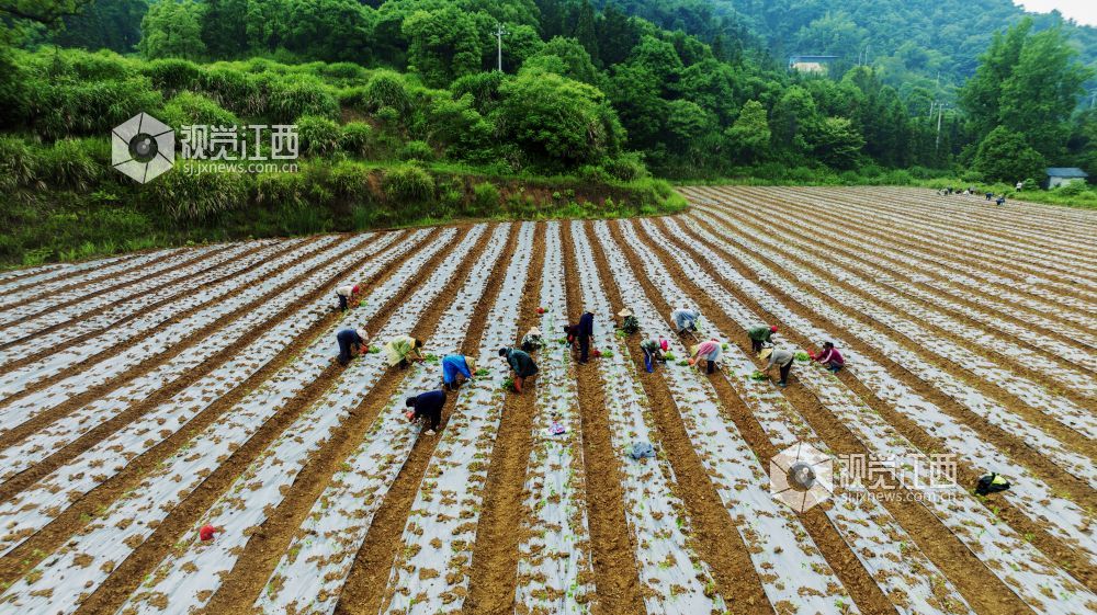 5月15日,江西省新余市渝水区良山镇黄虎村乡村振兴基地,农民们正在抢抓农时移栽辣椒,现场一片繁忙景象。