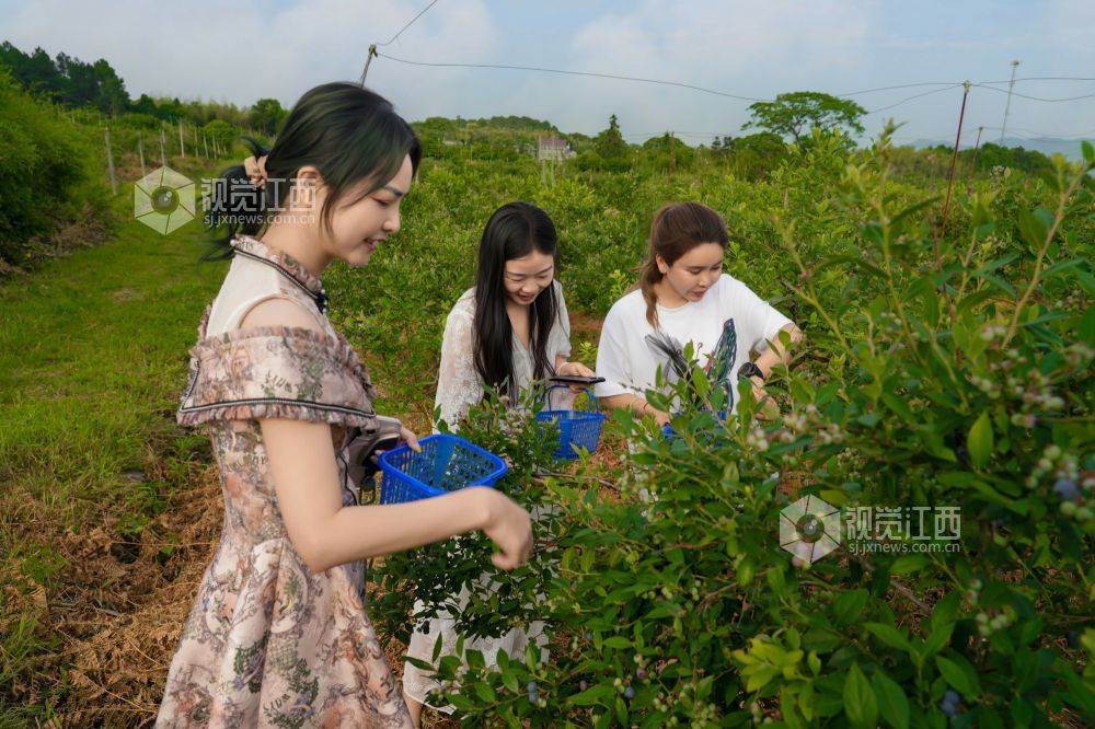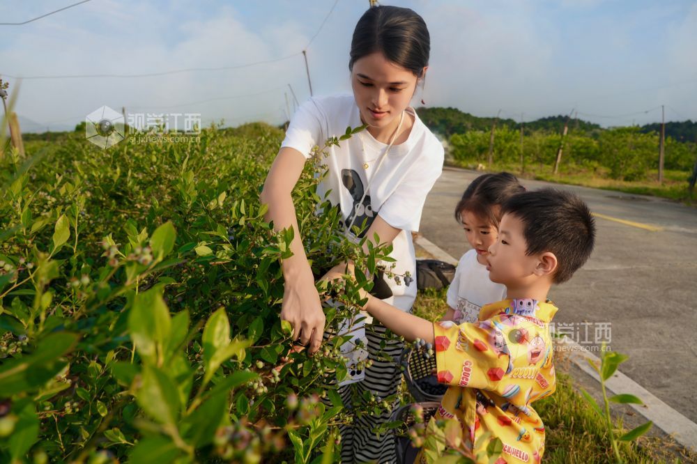 5月14日,江西省吉安市峡江县巴邱镇胡姚家村130亩蓝莓园迎来丰收盛景,缀满枝头的"蓝宝石"裹着天然果霜,在绿叶掩映间散发着诱人光泽,吸引着络绎不绝的游客提篮采摘。