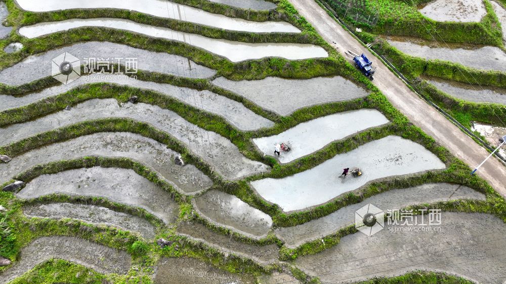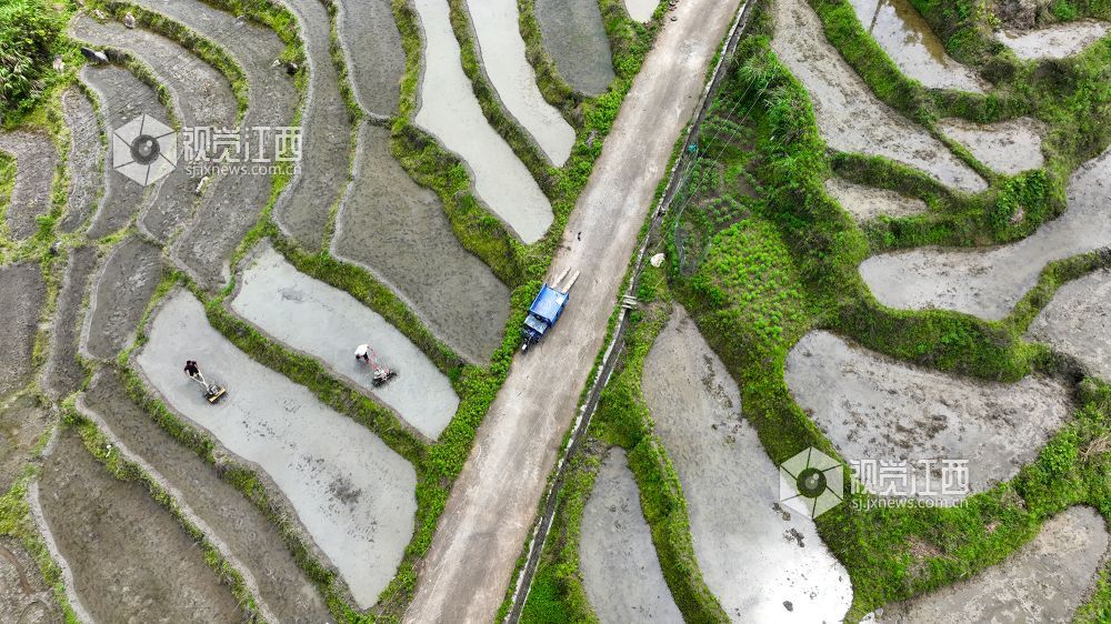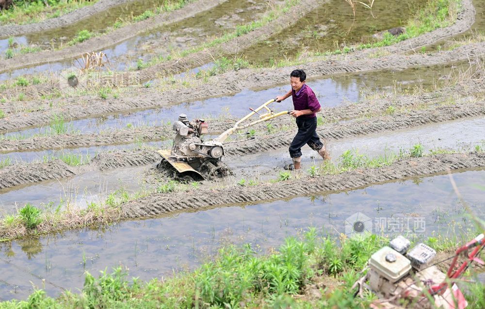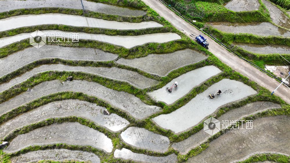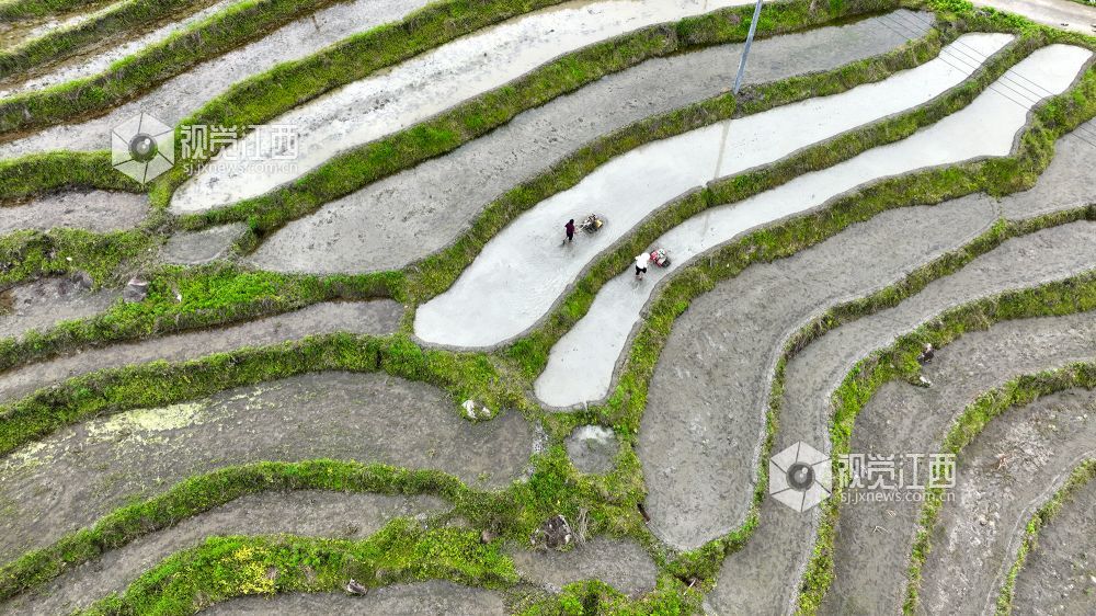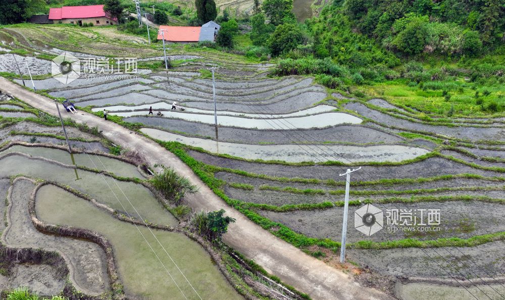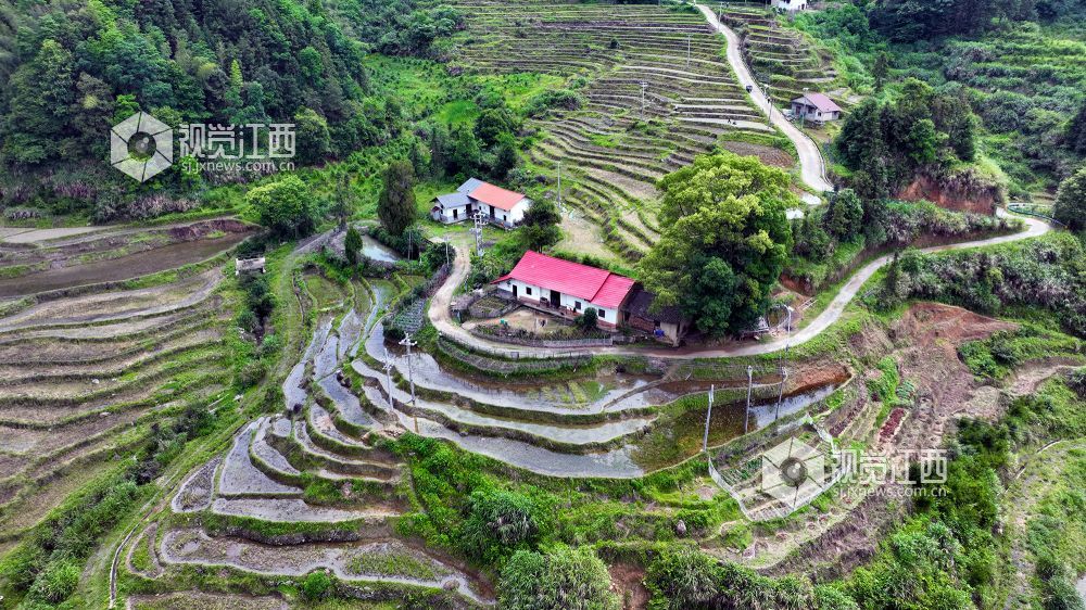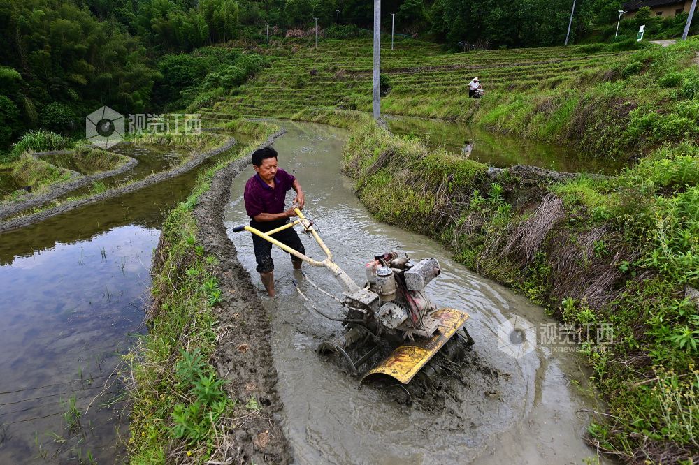 2025年5月21日,江西省宜春市万载县白水乡老山村高山梯田陆续进入忙碌的耕作期。当地村民犁田、砌埂、除草、育秧等,忙碌的身影与层层叠叠的梯田连同特色村屋,勾画出一幅和谐自然的高山耕作画卷。