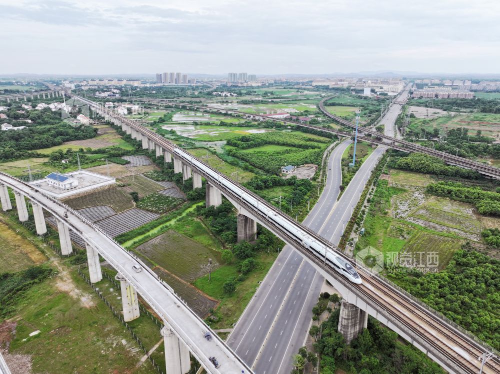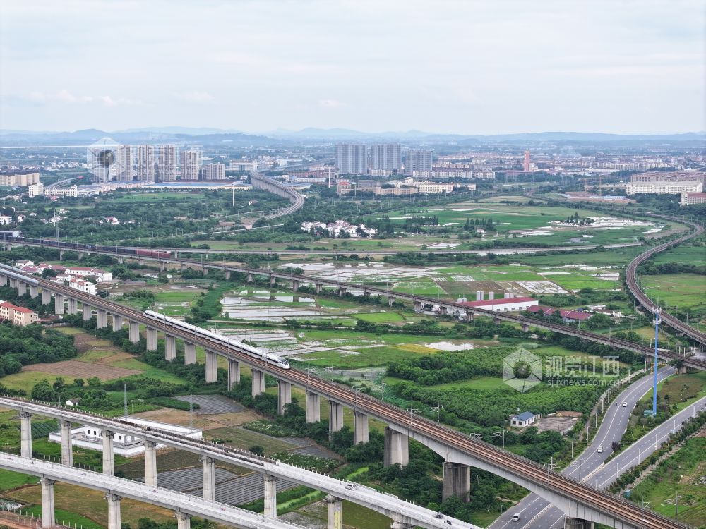 2025年5月20日,初夏时节,一列高铁奔驰在沪昆高铁线上,穿越夏日田野,勾勒出一幅美丽的画卷。