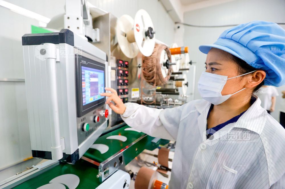 2025年5月22日,经过技能培训后的留守妇女在江西省吉安市峡江县一家企业生产车间做工。