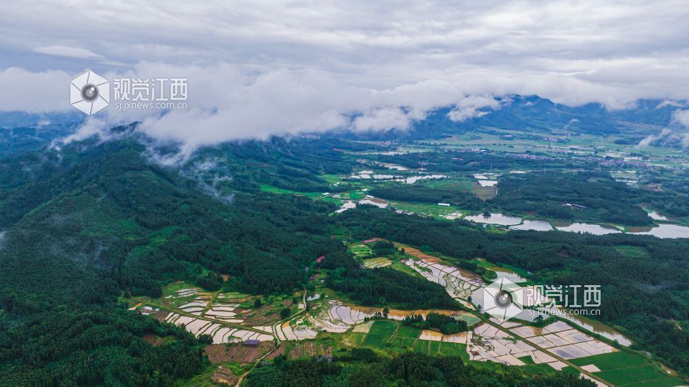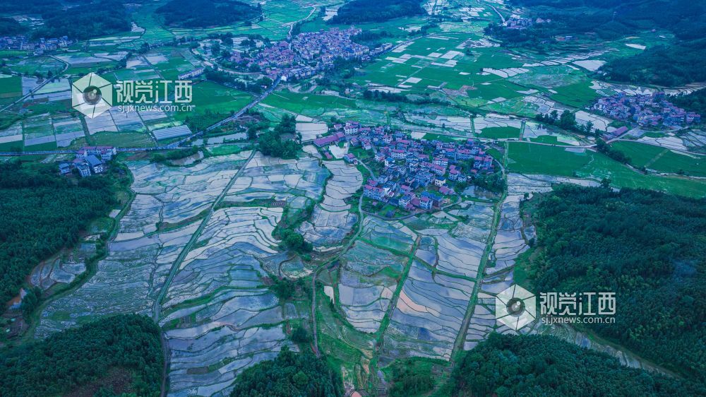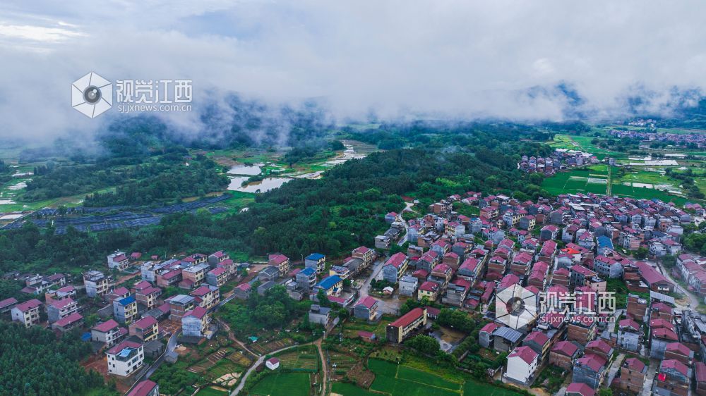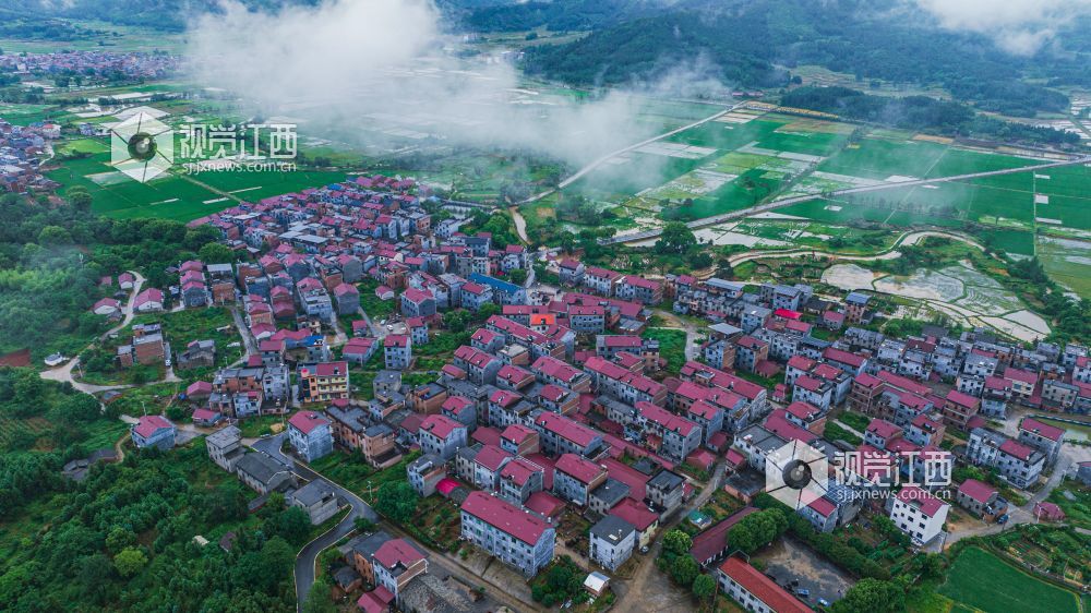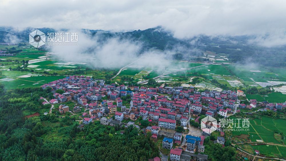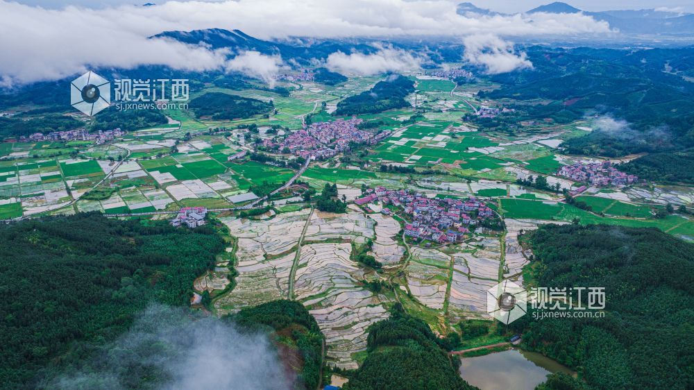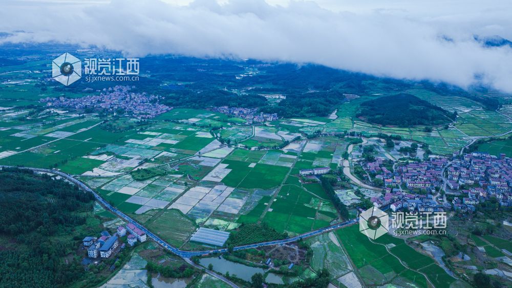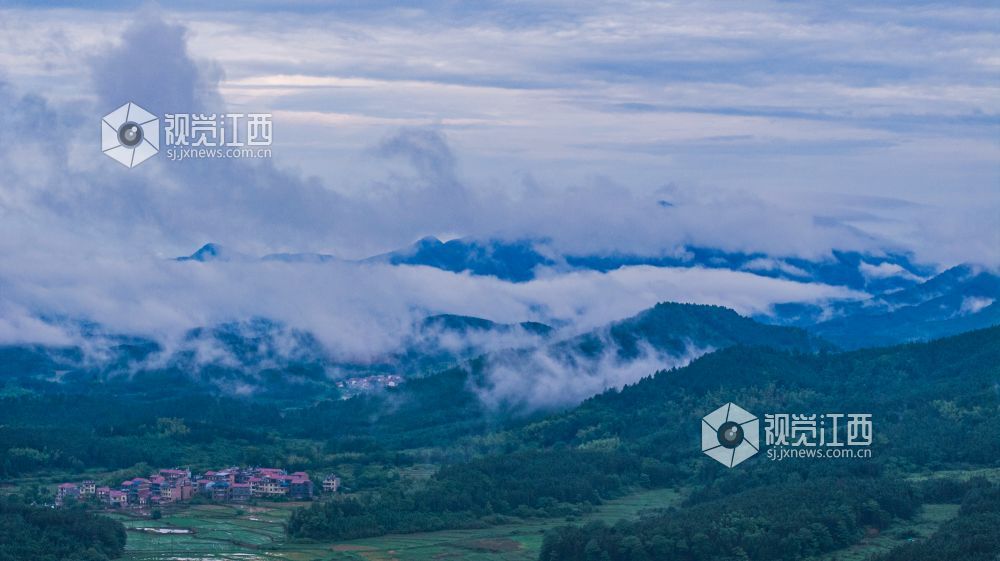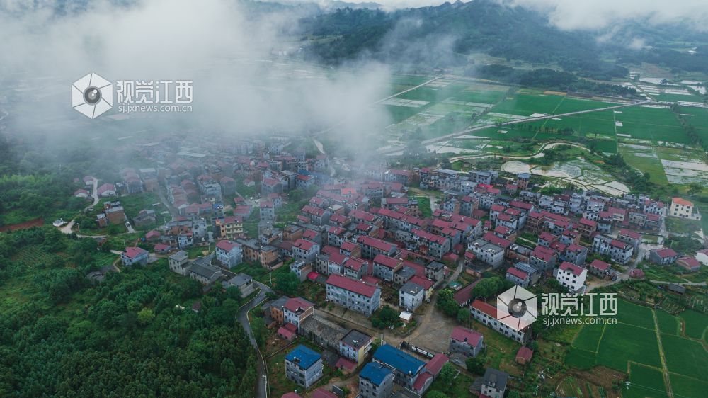 5月18日,江西省吉安市新干县麦斜镇?丘田村,一场夏雨过后,变幻的云海将村庄、梯田、山峰装扮得如梦如幻,山峦间云雾流动,蜿蜒的山间道路和层层叠叠的梯田在云雾中若隐若现,构成一幅幅美丽的乡村画卷。