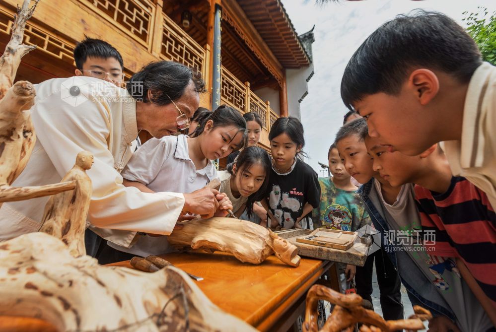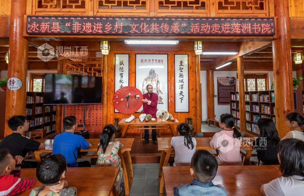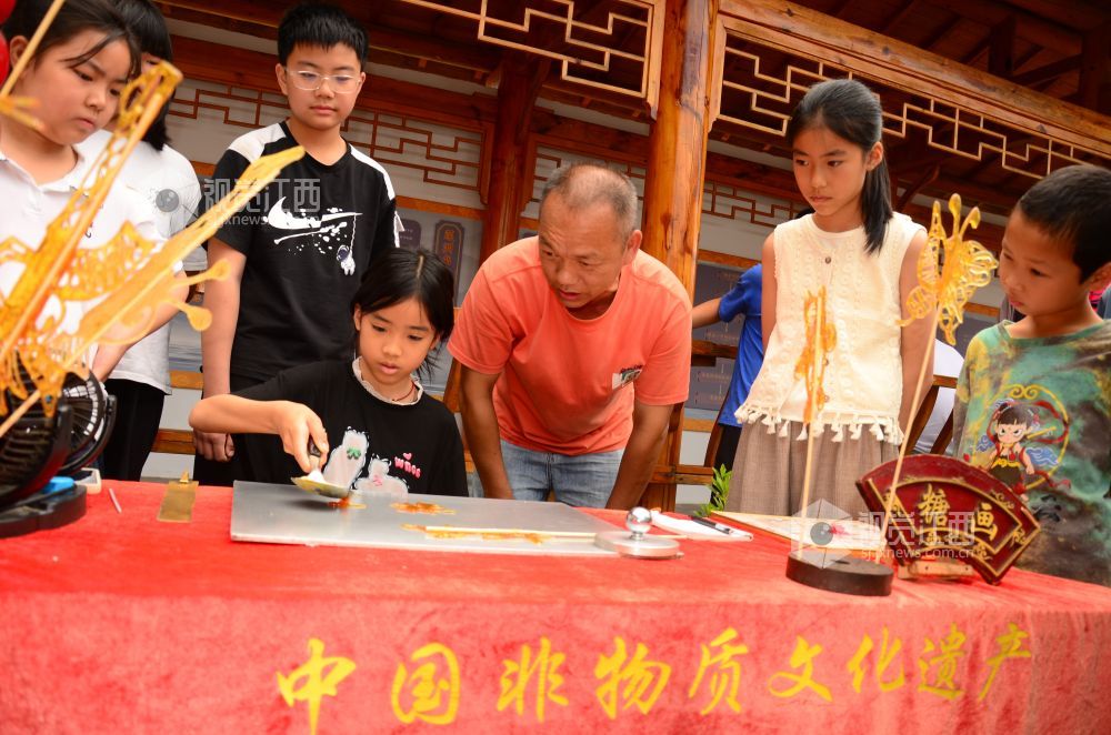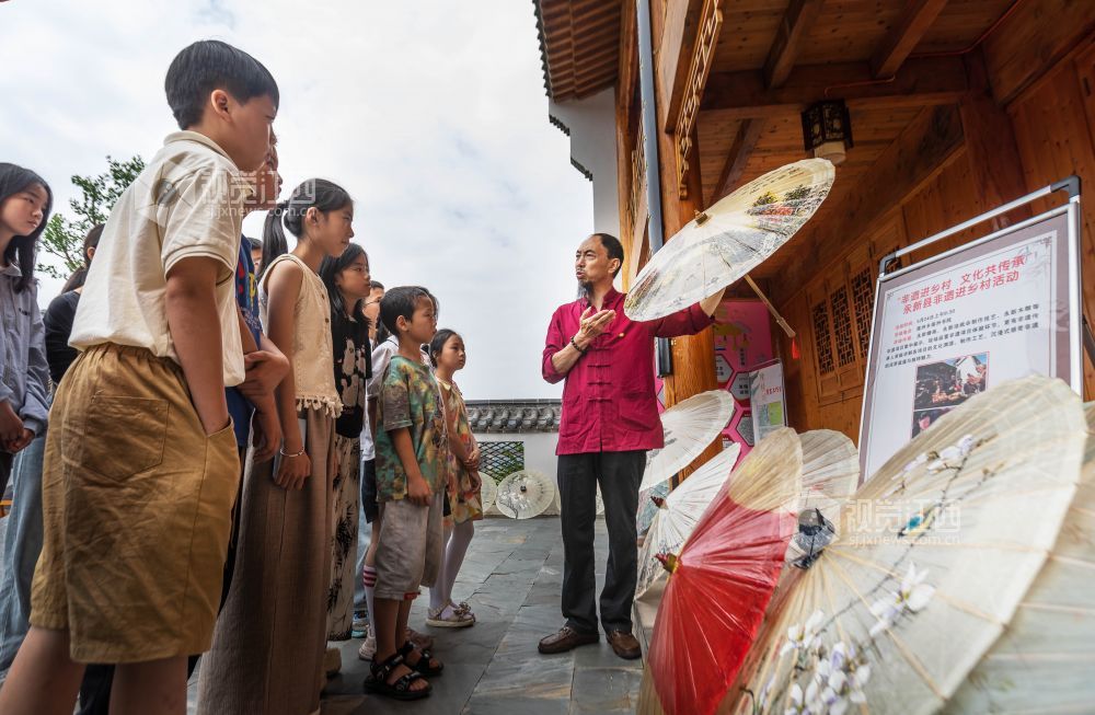 5月24日,江西省永新县文旅发展中心在莲洲书院开展"非遗进乡村"活动。油纸伞制作、木雕、糖画等非遗传承人现场教学,孩子们积极参与油纸伞绘画、木雕拓印和糖画制作,亲身体验传统工艺的魅力。活动通过互动实践,让孩子们近距离感受非遗技艺的文化价值。