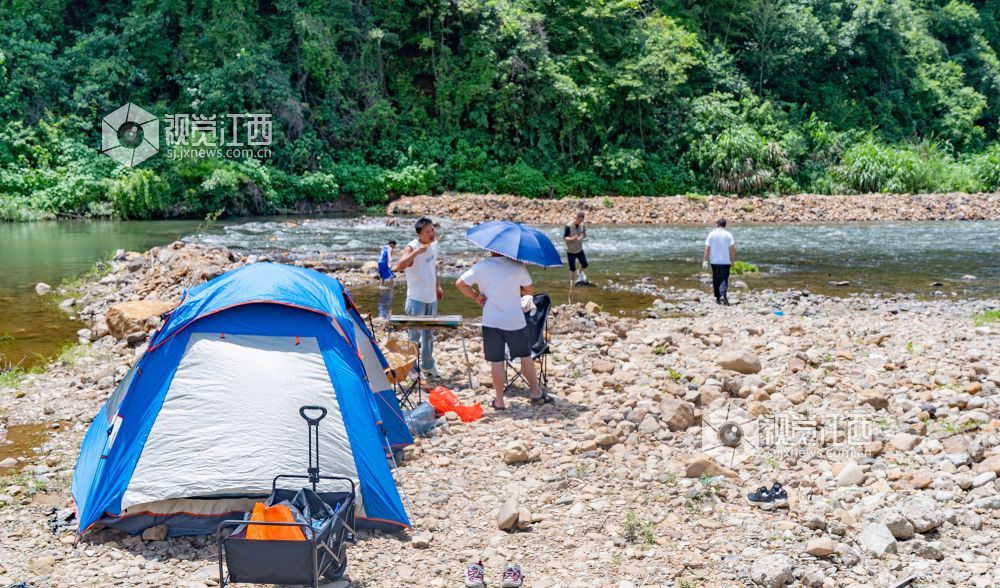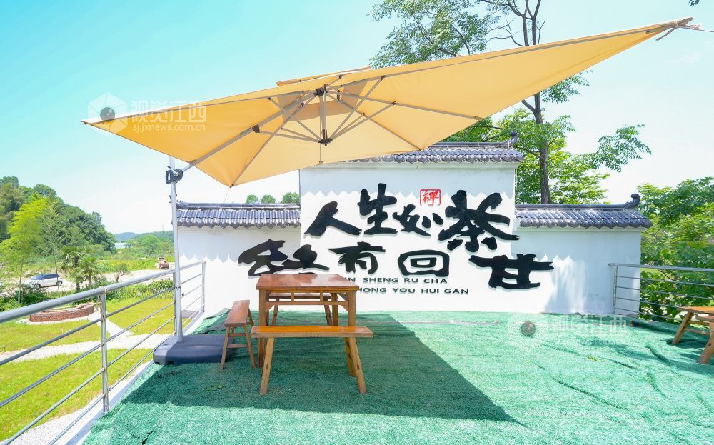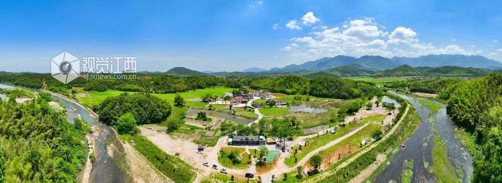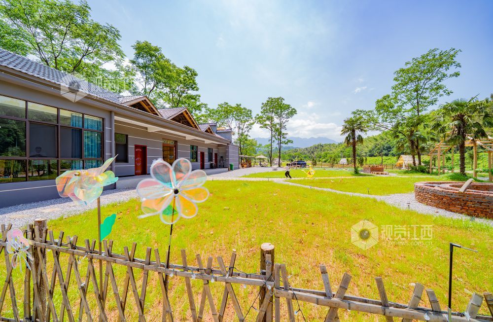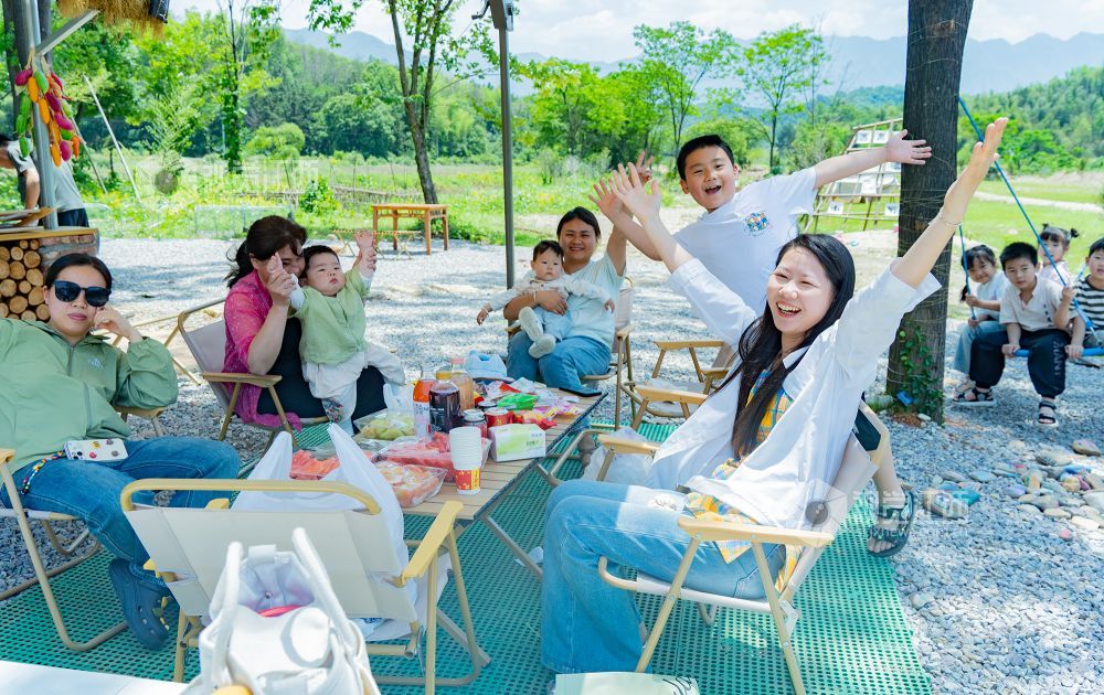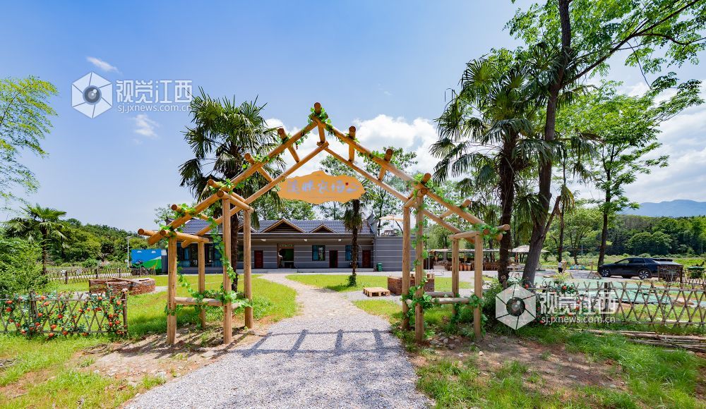 5月24日,在江西省金溪县何源镇彭家村集体经济企业——溪畔农场里,游人正在开心游玩、拍照留念。