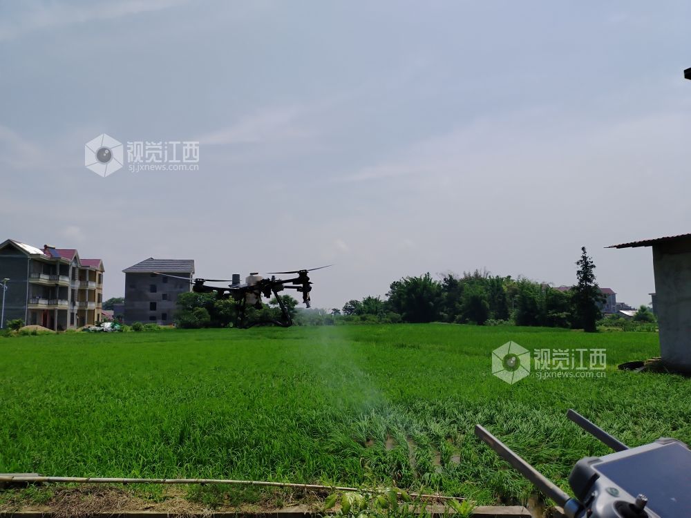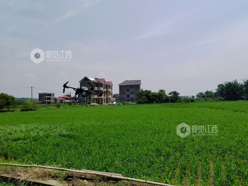 泰和县苏溪镇3万余亩早稻正处孕穗生长关键期,苏溪镇积极指导村民利用无人机对稻田禾苗进行高效、精准的施药防病飞防作业,确保早稻增产丰收。
