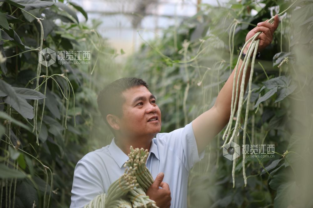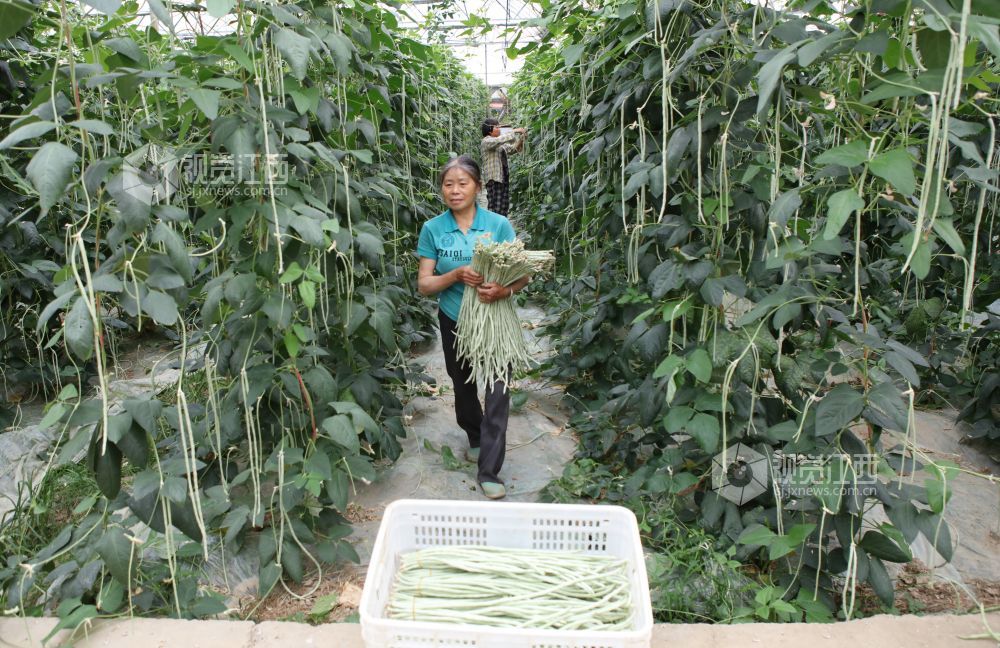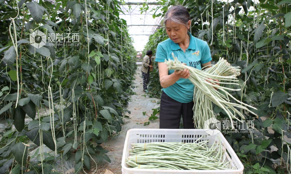2025年5月24日,江西禾祥润生态农业开发有限公司员工正在温室大棚里采摘时令蔬菜,准备供应市场。
