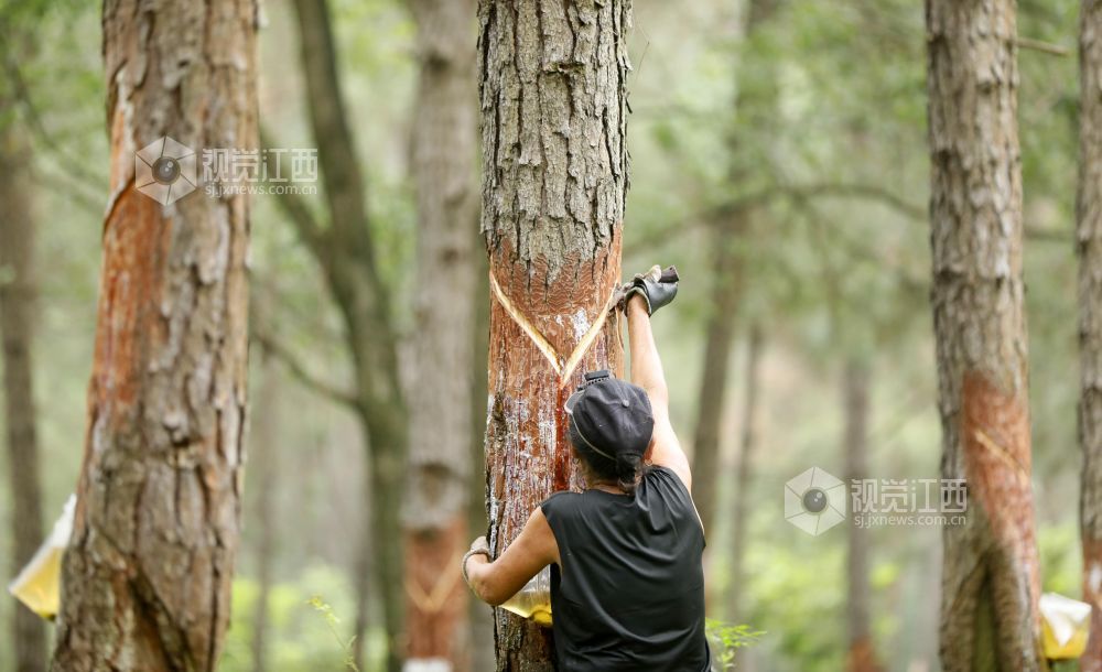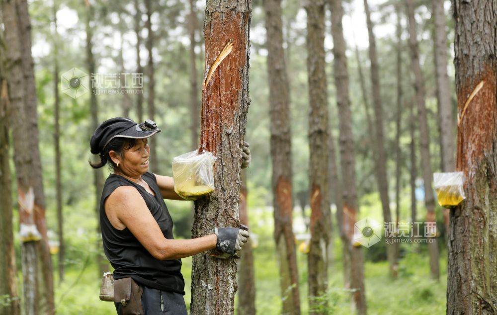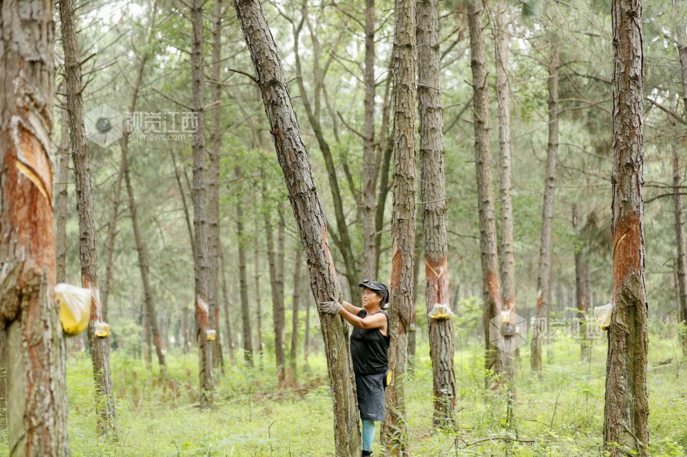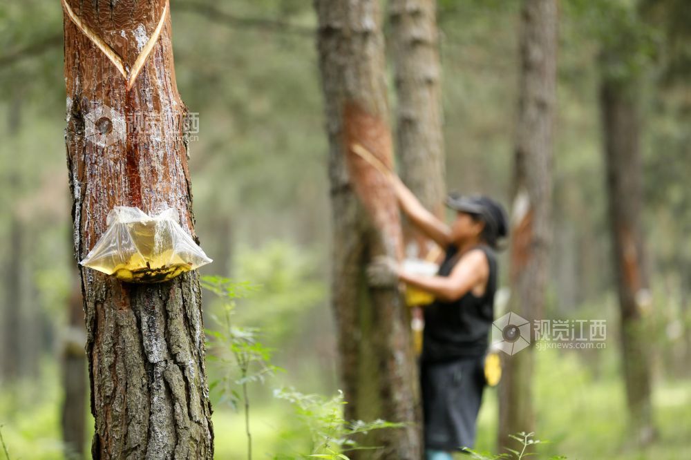 5月27日,江西省吉安市泰和县塘洲镇洲头村,林农正在采割松油劳作。江西泰和县林业局以林长制为引领深化集体林权制度改革,积极发展林下经济,推动绿色发展、助力林农增收。