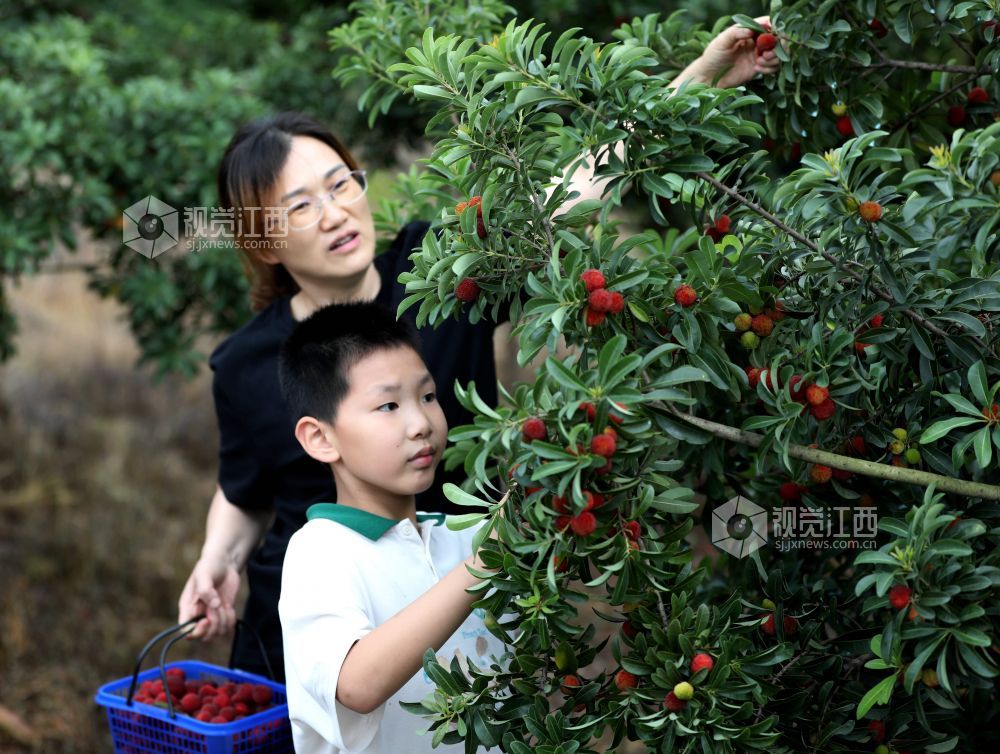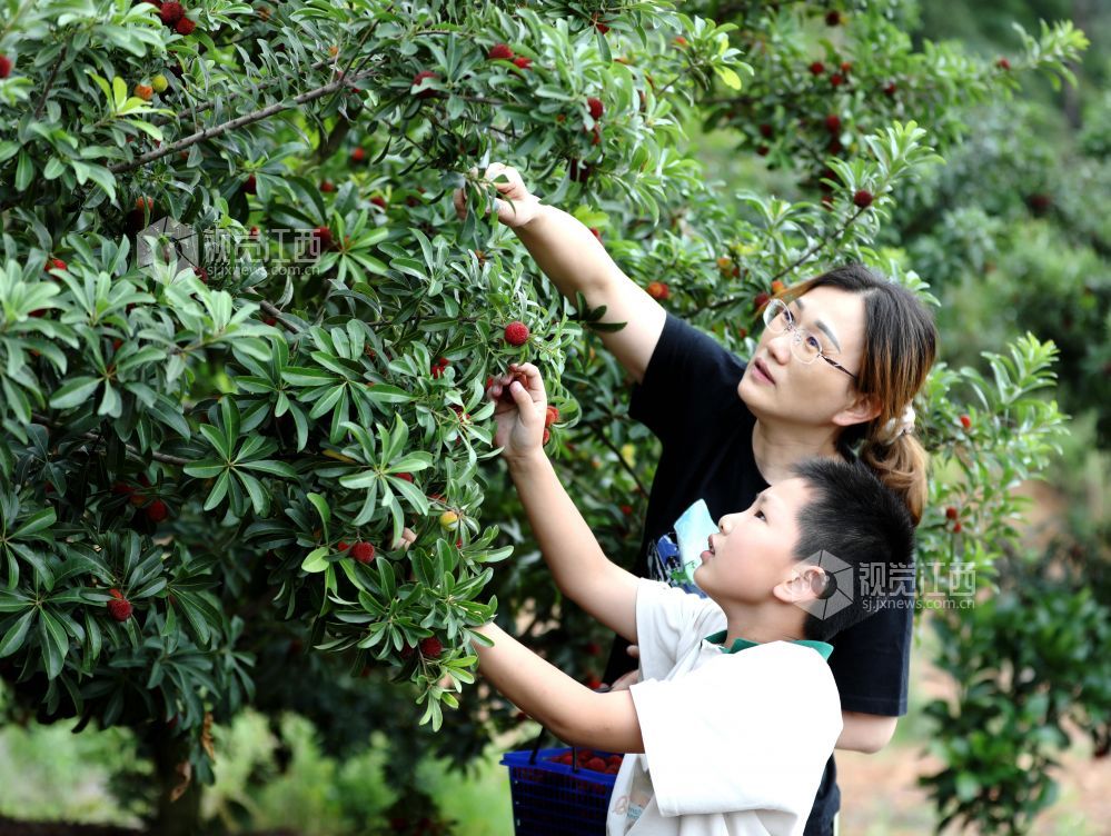 2025年6月2日,游客正在采摘成熟的杨梅。眼下,正是杨梅成熟的季节,江西省分宜县钤山镇岭下村丹江桥头的杨梅园里,杨梅挂满枝头,一颗颗杨梅在绿叶之间散发出阵阵果香,吸引众多游客前往体验采摘的乐趣,共享“梅”好时光。