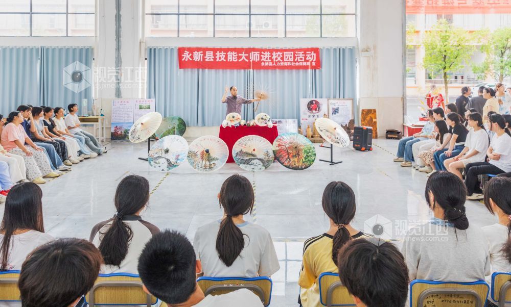 6月10日,江西省永新县人社局组织油纸伞、木雕、陶艺等领域的技能大师走进永新中等专业学校,开展技艺展示与互动教学。